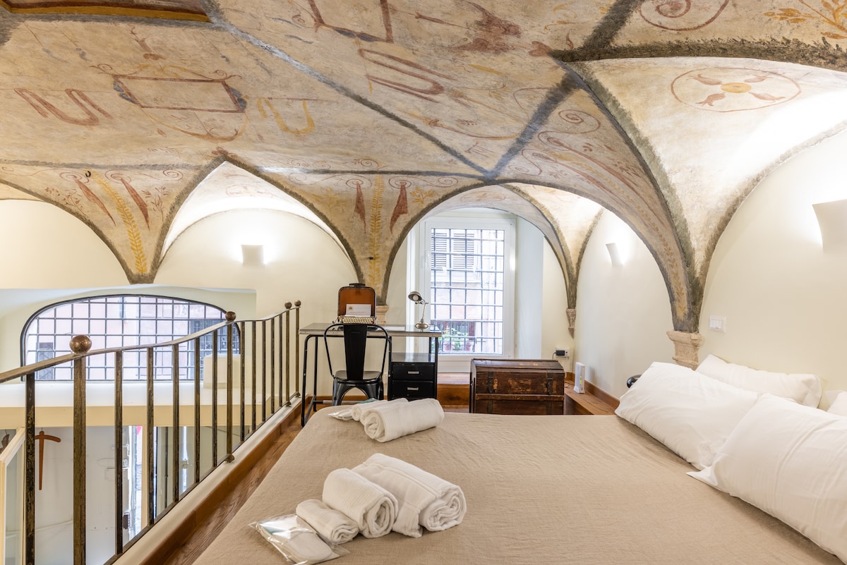 Situado a 200 metros de la Piazza Navona, este estudio de dos plantas en la planta baja tiene un auténtico fresco del siglo XVI en el techo. La planta baja ofrece una cocina totalmente equipada y una acogedora sala de estar, mientras que la planta superior alberga el dormitorio. Perfecto para explorar el Castillo de Sant'Angelo, el Panteón, la Fontana di Trevi, la Via del Corso, la Ciudad del Vaticano, la Piazza Venezia, San Pietro y el centro histórico a pie. Este apartamento combina las comodidades modernas con el encanto histórico. Cerca de la estación de autobuses, metro y taxis.