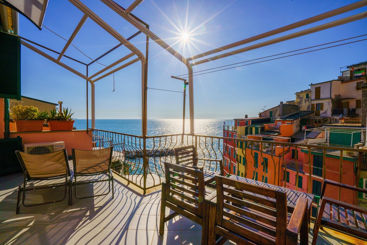 La terraza con vistas al mar. Riomaggiore, Cinque Terre.