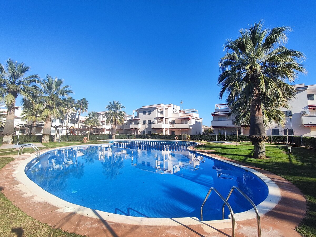 Tu apartamento ideal con piscina junto a la playa.