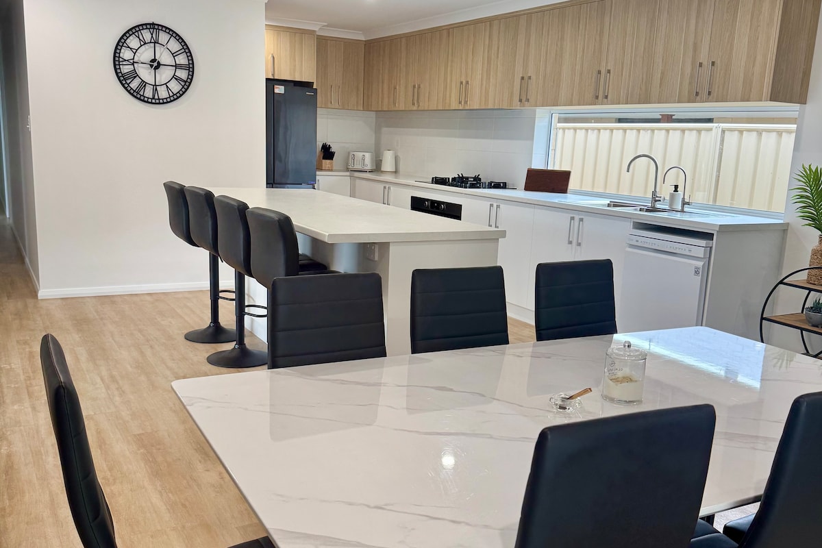 Freshly renovated beach house with luxury beds and furniture in the heart of Esperance. Suitable for families and groups. Incredible ocean views, beach is across the road. A short walk to the beautiful Whale Tail sculpture, safe swimming area with water slide and pontoon, skate park, the jetty and coffee and food vans. The walking path is great for bike riding too Right behind is the Museum Village (Esperance Visitor Centre, cafe, shops) Walk to cafes, restaurants and shops nearby Easy parking