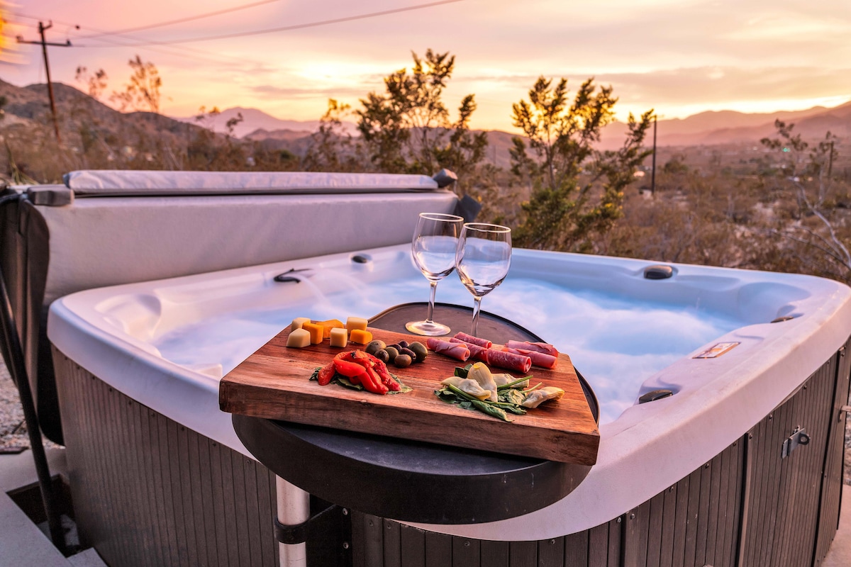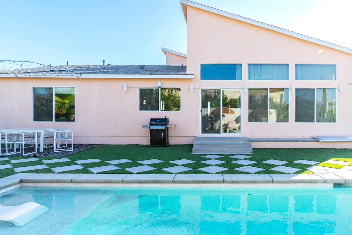 Bienvenido a Palm Peach, una fiesta en el desierto inspirada en Wes Anderson llena de colores y personajes, perfecta para 8 huéspedes. Toma el sol en tumbonas hechas a mano junto a la piscina en un patio trasero estilo resort. Sumérgete en la gran piscina de agua salada. Disfruta de un spa caliente bajo las estrellas. O reúnete alrededor de la chimenea para evitar los escalofríos. Experimenta una sala de juegos y teatro con luz negra única con un mural de luz negra, una mesa de billar de 8 pies, karaoke, juegos de Los Simpsons y mucho más.