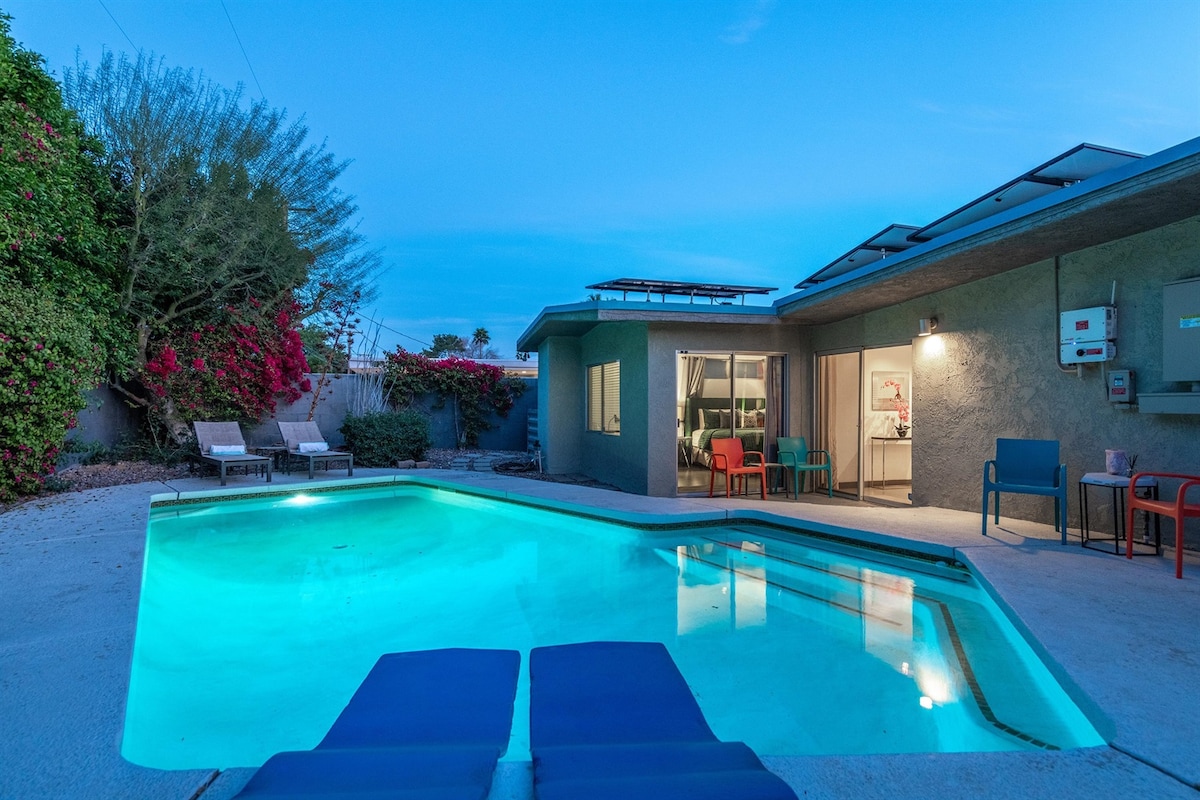 Retiro tranquilo en Palm Desert a 5 minutos de las tiendas y restaurantes de El Paseo, cómodo para Palm Springs y Indian Wells. Suite actualizada con 1 dormitorio, 1 baño y 1 sala de estar/cocina americana. Patio trasero privado con piscina y jacuzzi para tu uso exclusivo. Barrio seguro para caminar. Relájate en casa junto a la piscina o explora el valle de Coachella y su golf recreativo, tenis y pickleball. El arrendatario principal debe tener al menos 25 años y proporcionar un documento de identificación oficial según las normas de alquileres de corta duración de Palm Desert. 420 amigable y gay amigable.