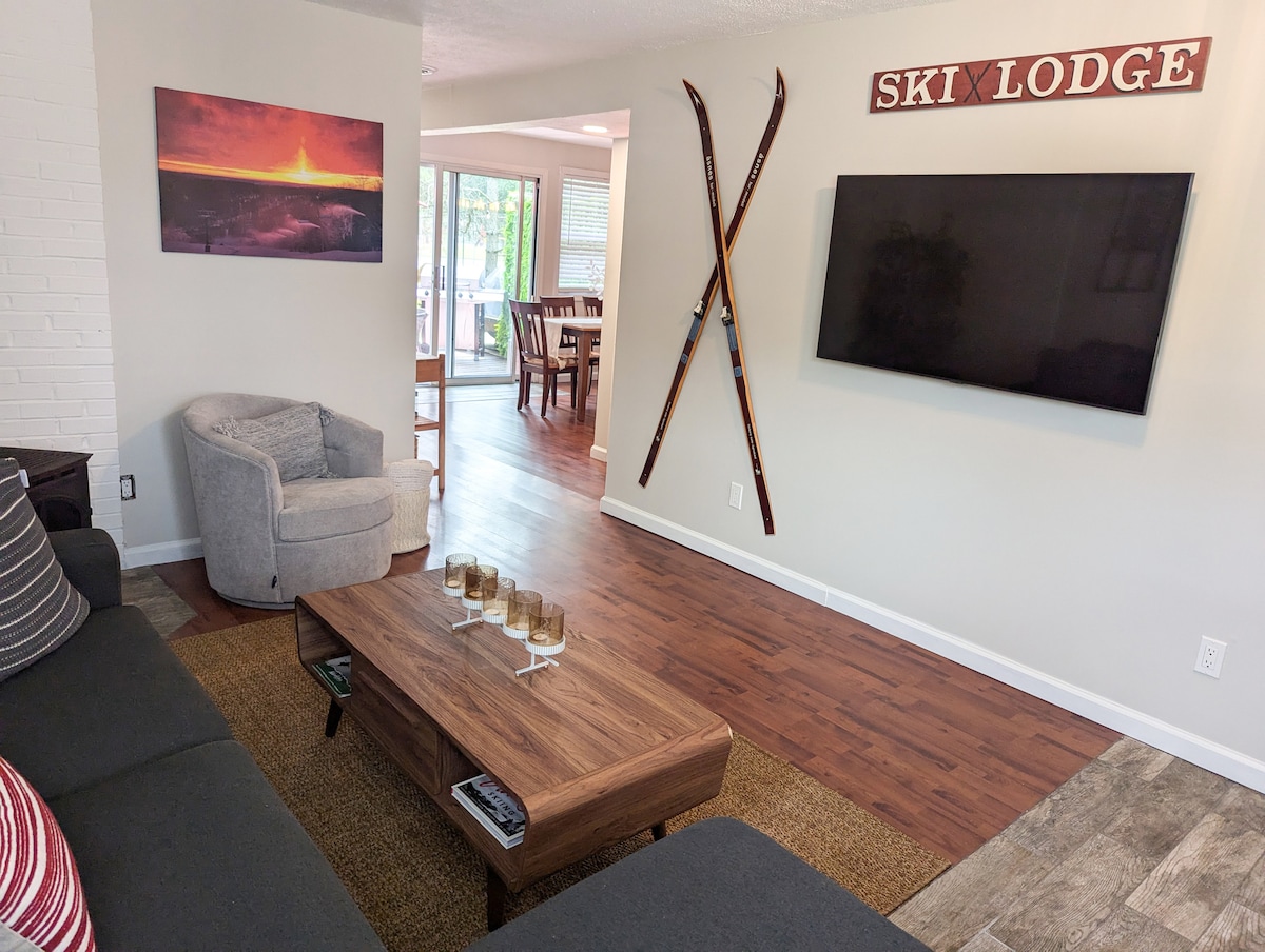 ¡Bienvenido a tu escapada perfecta en Holiday Valley! Este apartamento recientemente renovado ofrece un refugio cómodo con un dormitorio privado (cama tamaño king), una zona de dormitorio en altillo (cama tamaño queen y literas dobles) y un baño completo. Disfruta de la comodidad de la entrada sin llave, aparcamiento dedicado, wifi, TV por cable y lavandería en la unidad. Relájate en el patio con capacidad para cuatro personas y aprovecha al máximo el aire acondicionado del lugar, perfecto para estancias de verano e invierno. Ubicado justo al lado del telesilla SnowPine, este apartamento es un deporte de invierno.