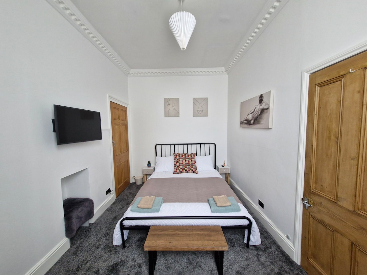 Precioso apartamento en planta baja con aparcamiento gratuito en un espacio moderno y luminoso. Disfruta de banda ancha de fibra ultrarrápida, un televisor de 75" con Sky y Netflix, y techos altos. A solo 15 minutos a pie del Barbican, a 20 minutos del centro de la ciudad y a 2 minutos de tiendas y restaurantes. Haz tu pedido con Deliveroo, Uber Eats o Just Eat. Cámaras de seguridad en los puntos de entrada, autorregistro con caja de llaves. ¡Perfecto para familias, parejas, viajeros solitarios o viajes de negocios!
