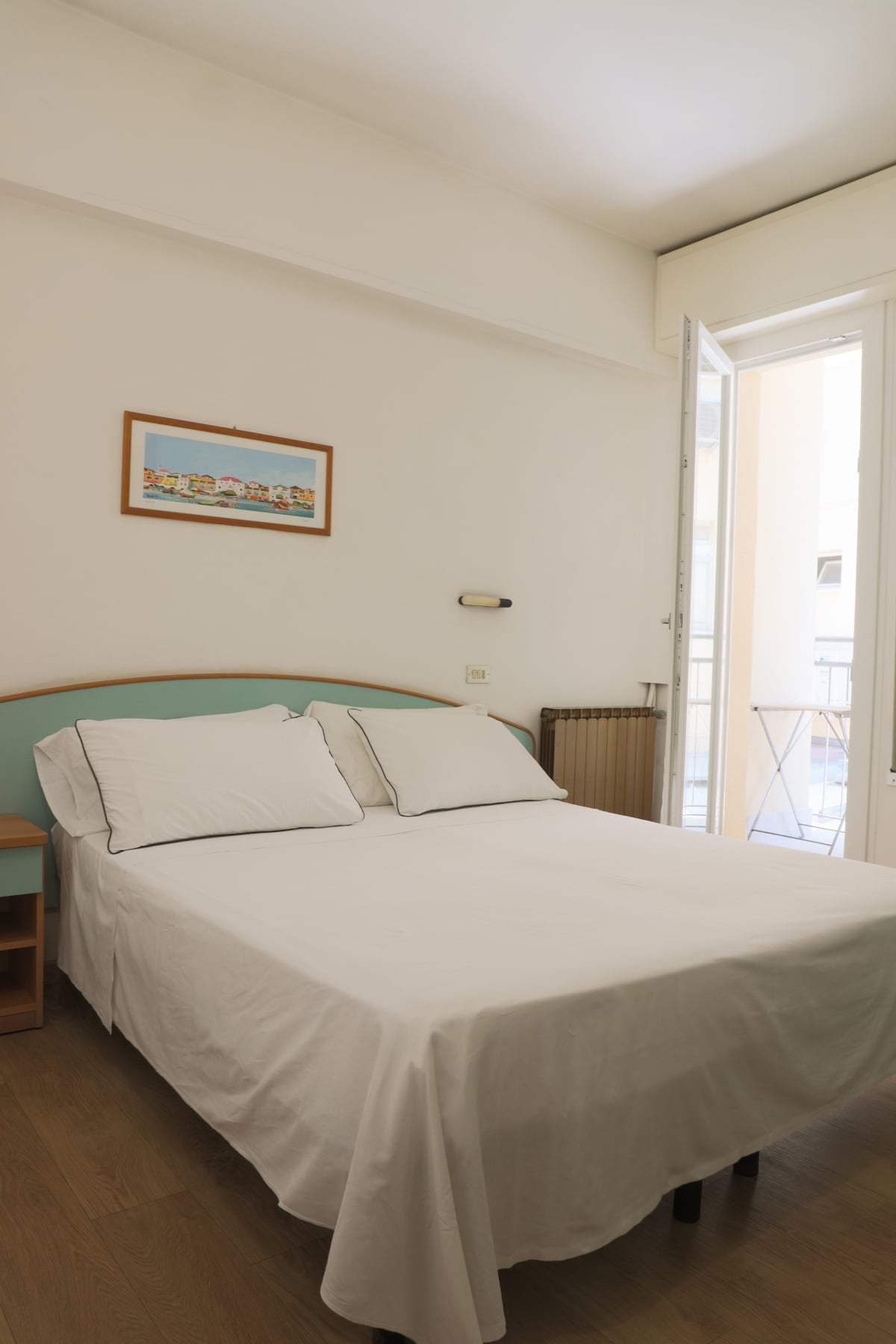 La tua base smart a Riccione! 🌊 Camera matrimoniale a 100m dal mare con balcone privato affacciato sul retro per la massima tranquillità. Dotata di TV LED, Wi-Fi veloce, tapparelle elettriche e frigobar libero. ⚠️ Nota: Bagno completo con bidet e box doccia (cieco o finestrato in base alla disponibilità). Ascensore vintage molto piccolo ↕️. Il nostro plus? 🍳 Area Food: cucina comune al piano rialzato. ☕ Caffè: 0,50€! 🥐 Brunch: a 10€ (a 180m). Apertura smartphone 📲 e reception h24. 🚀
