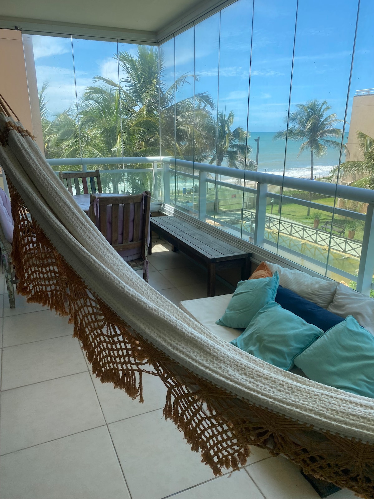 Hermoso apartamento a pie de playa, recién reformado, muy cómodo, bien decorado y equipado, con una vista increíble de la playa de Cumbuco, ¡uno de los mejores lugares para hacer kitesurf del mundo! El apartamento cuenta con Wi-Fi de alta velocidad, Smart TV y aire acondicionado en los tres dormitorios y en la sala de estar. Cocina completa para que prepares tus comidas con todas las comodidades y te sientas realmente como en casa.