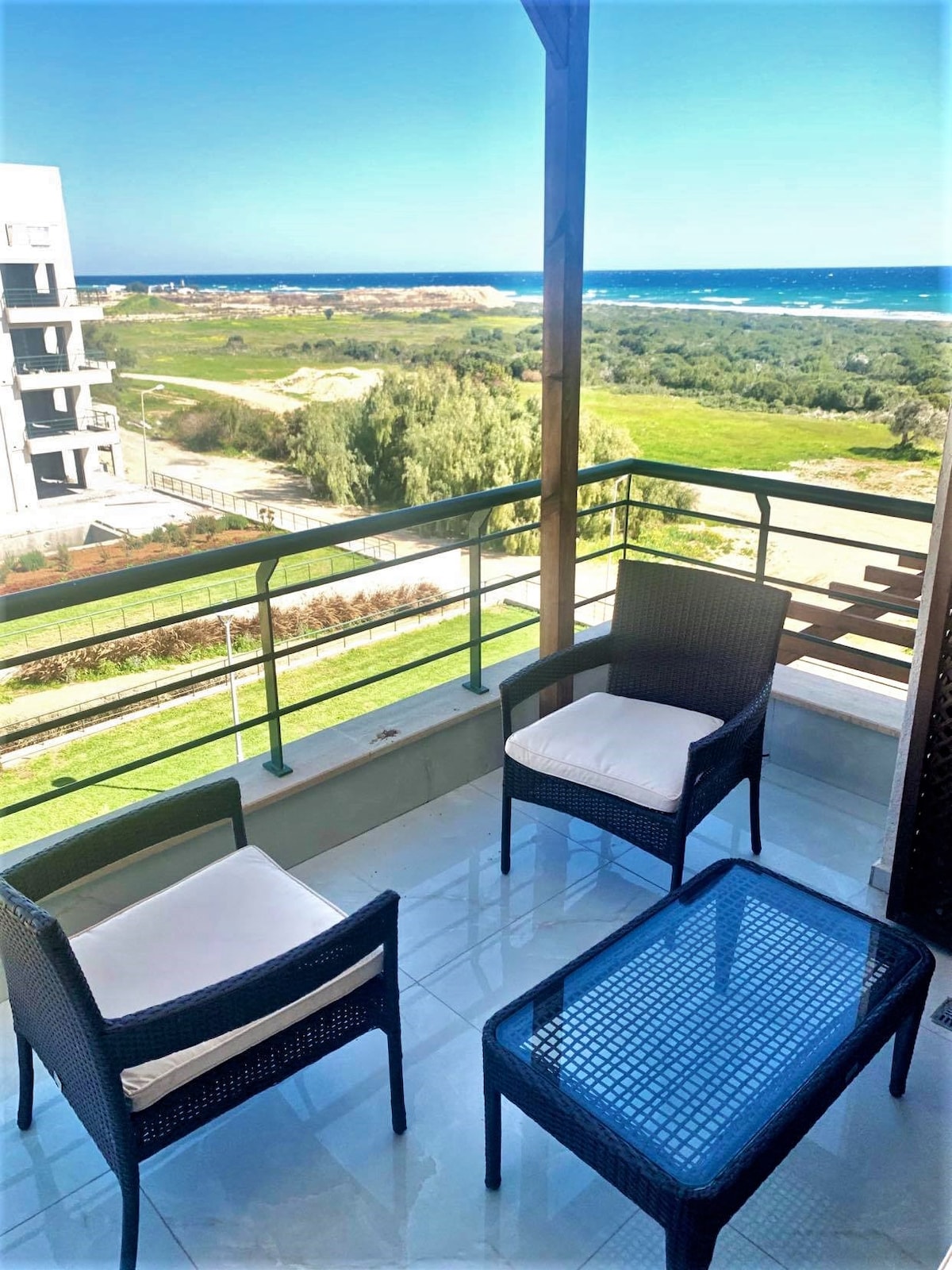 Apartamento 🌊 de estilo bohemio a solo 200 m del mar y de los restaurantes. Cocina equipada, Netflix, aire acondicionado y balcón. Acceso gratuito a piscina, sauna, baño turco, gimnasio, pista de tenis, parque infantil y mucho más. El supermercado está a solo 100 m de distancia, abierto todos los días de 7:30 a. m. a 10:30 p. m. Ubicación perfecta tanto para relajarse como para la aventura, con casinos cercanos y burros salvajes junto al mar que caminan junto a tu coche. ¡Te espera una estancia verdaderamente única!