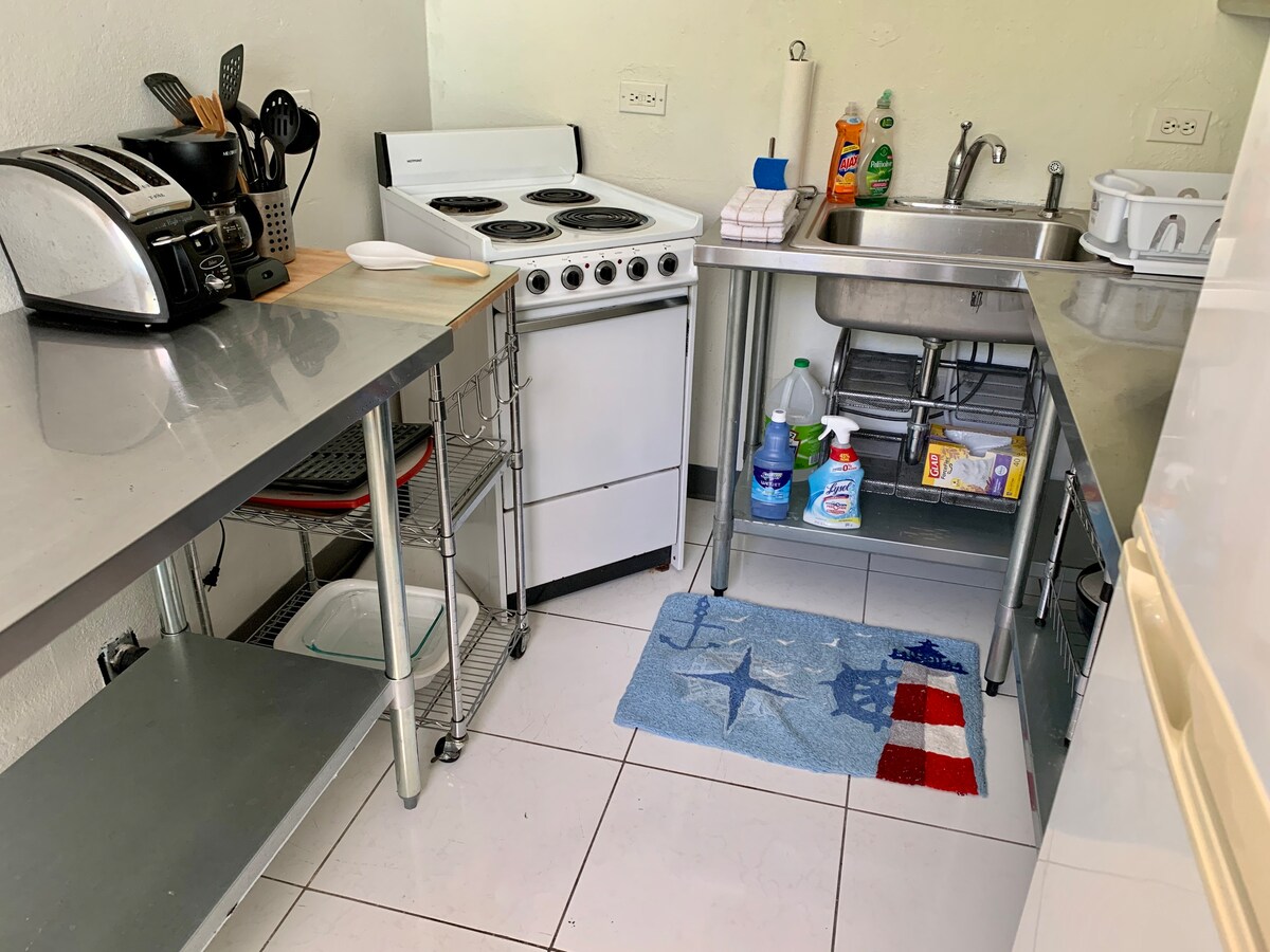Olvídate de tus preocupaciones en este estudio privado y espacioso equipado con una cómoda cama tamaño queen y sofá cama. Estamos a minutos de la famosa Seven Mile Beach y Camana Bay. Disfruta del cálido sol caribeño en las playas cercanas y relájate en la comodidad y la privacidad de tu tranquilo jardín. Nuestra cocina está equipada con una mini nevera, Keurig, hervidor de té, microondas, tostadora, café, tés y condimentos (azúcares, etc.). ¡Estacionamiento fuera de la carretera! ¡Sin espacios compartidos! ¡Esperamos poder darte la bienvenida pronto!