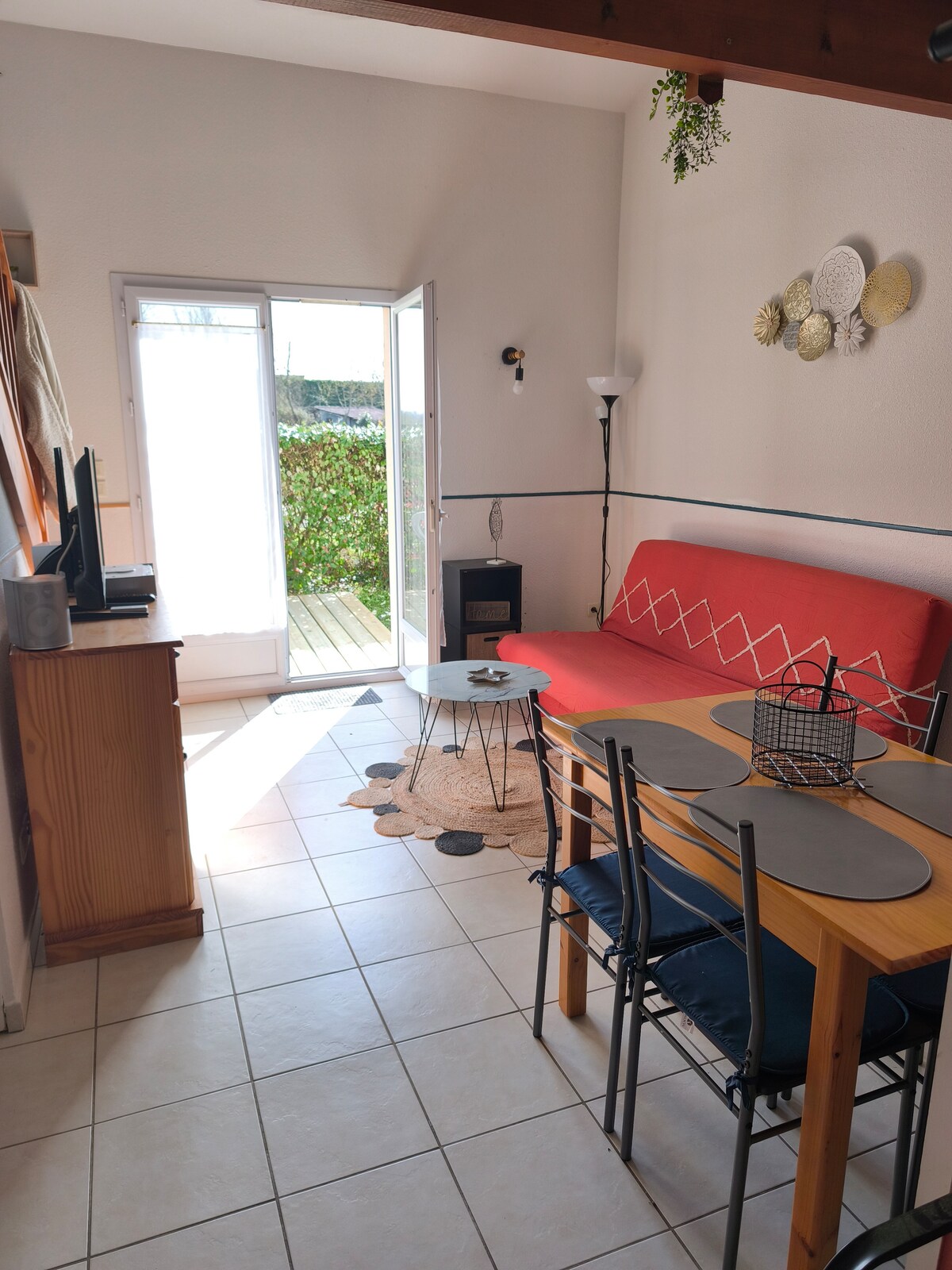 Estudio amueblado en planta baja, orientado al sur, clasificado 2**, para 1 o 2 personas, con todas las comodidades: cama de 140 con almohadas, televisión, mini horno, microondas, lavadora, mini congelador, 2 bicicletas con congelador, 2 bicicletas disponibles, Wifi, estacionamiento, alquiler de ropa de cama. Situado en un pequeño pueblo termal, cerca de todos los servicios, tendrá la opción de actividades: a pie, pesca, remo, tenis y para relajarse una base de ocio con piscina y lago, pedales, juegos de niños o cine, casino, vía verde.