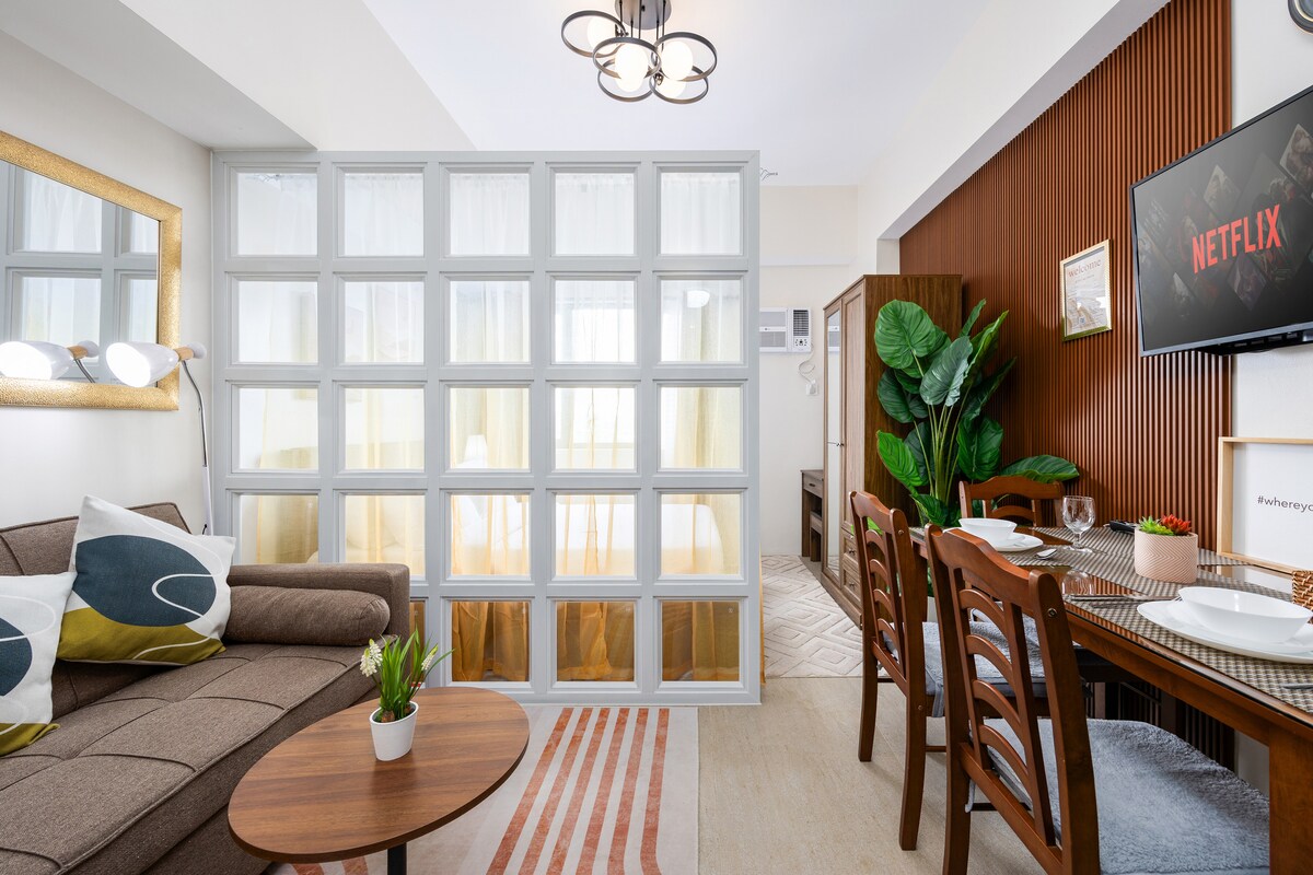 **On Going Special Promo! Welcome to my new and cozy studio inspired by Baybayin, just a few minutes' walk from IT Park and near Cebu's tourist spots. With its laid-back “coast meets city” vibe, this space is perfect for both getting some work done and unwinding. Enjoy resort-style amenities like a refreshing pool, 24/7 security, a gym, a comfy co-working space, a cute café, and a handy laundry shop, all right at your fingertips. Plus, it is near tourist spots and restaurants. Book Now!