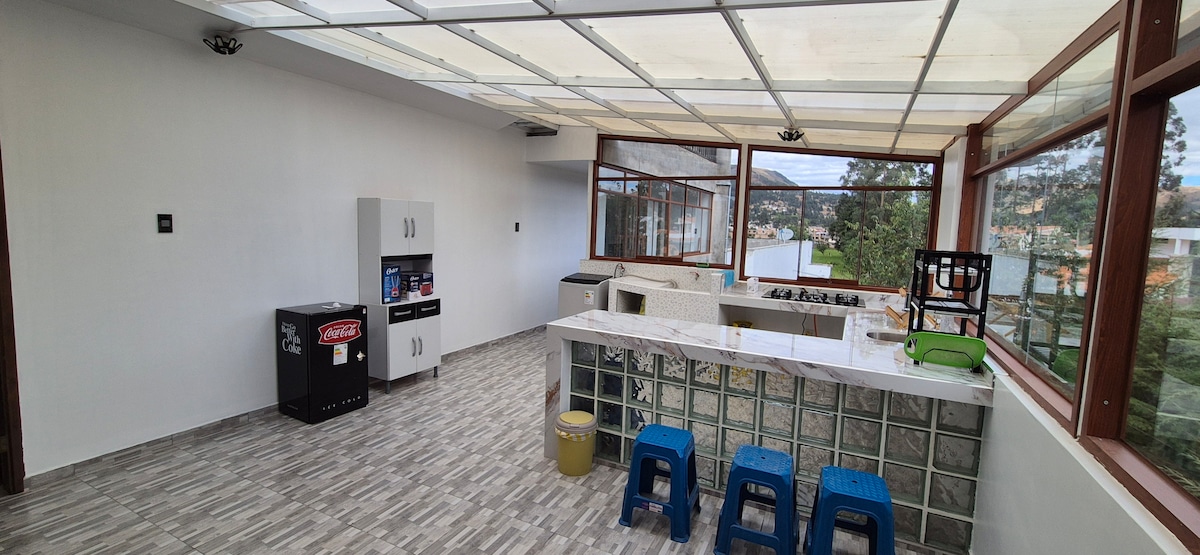 Relájate en este espacio tranquilo y elegante, es una casa tipo Loft alejada de la ciudad con vistas panorámicas y montañas a su alrededor que se pueden recorrer en bicicleta o caminatas con buenos paisajes y vistas de la ciudad de cajamarca y baños del inca, alejado de todo el ruido y de la urbe, pero a la vez cerca de la ciudad para poder acceder a los servicios como las aguas termales de baños del inca.