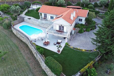 Fantástica villa junto al Castillo de Linhares da Beira. Dispone de 4 dormitorios, con baño completo y privado, y tiene capacidad para alojar hasta 8 personas. En el exterior, la propiedad está completamente vallada y ofrece buena privacidad, con excelentes vistas de las montañas de Caramulo, el Castillo de Linhares y la Serra da Estrela. Un amplio jardín con una gran piscina privada y tumbonas le permitirá disfrutar plenamente de la hermosa puesta de sol