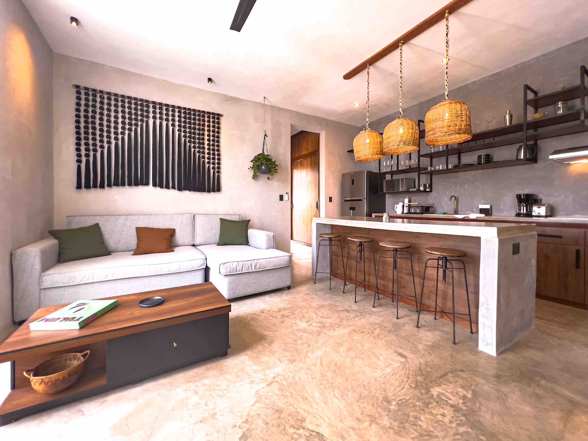 3 Min Walk to Centro Tulum 5 Min Drive to Tulum Beach 5 Min Drive to Tulum Ruins When you stay in this beautifully designed, modern studio located right near Centro Tulum, indoor and outdoor living blend together seamlessly. Modern with fiber WiFi, and open bedroom, a sleek modern kitchen, spacious living areas, and luxurious pools, this quiet retreat is also minutes from the best restaurants and bars. Balcony is next to a serene waterfall. Experience Tulum With Us & Learn More Below!