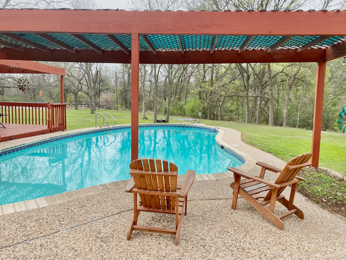 Hermosa casa en 2 acres a lo largo de Walnut Creek, ¡justo fuera de Austin! Relájate junto a la piscina, juega, observa pájaros o duerme la siesta a la sombra. Nuestros árboles altos y césped ajardinado ofrecen privacidad pacífica. El sueño de un amante de la naturaleza con fácil acceso a la ciudad: Uber y Lyft. ¡Descubre el país y una porción de la ciudad, todo en una sola estadía! Espacios interiores acogedores, comedor al aire libre y mucho espacio para deambular, perfecto para familias, reuniones de amigos o una escapada tranquila en solitario.