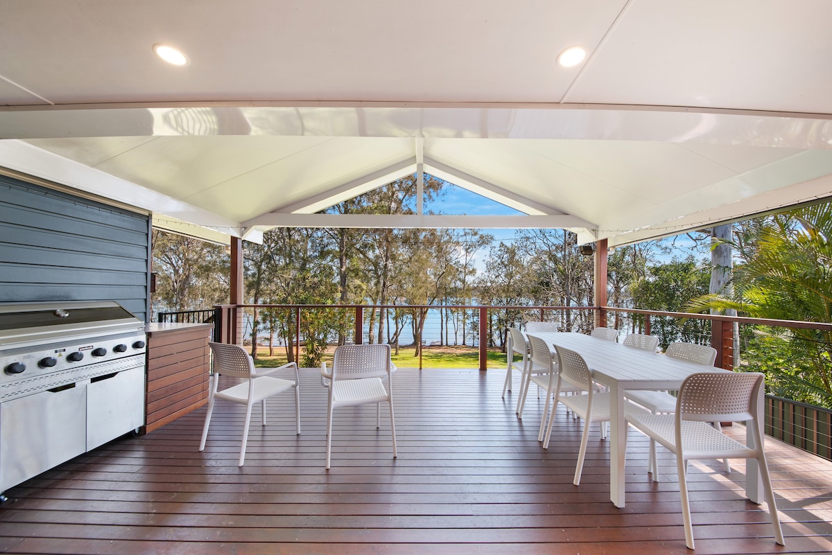 ¡Te damos la bienvenida a nuestro impresionante refugio frente al mar! Ubicada a orillas del hermoso lago Macquarie, nuestra espaciosa y elegante propiedad ofrece la escapada perfecta para familias que buscan disfrutar de un tiempo precioso juntos. Con 5 dormitorios, 3 baños y 2 salas de estar, hay mucho espacio para varias familias. Si tienes la intención de hacer una fiesta, no reserves esta casa. Nuestros vecinos no lo tolerarán. Si sois un grupo que busca relajarse en un lugar hermoso, ¡esta casa es para ti!