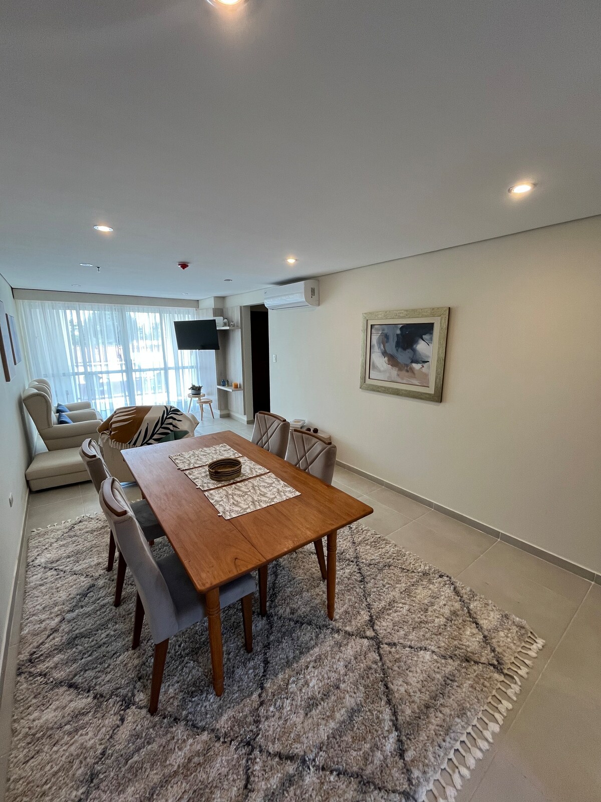 Alójate en la mejor zona de Asunción, a solo unos pasos del Paseo La Galería y Shopping del Sol. Este apartamento de lujo en la planta 15 ofrece vistas panorámicas, una cama queen climatizada, un televisor NeoQLED de 65" con sistema de sonido y una cocina totalmente equipada, ideal para estancias largas. Disfruta de acceso al spa con sauna, jacuzzi, sala de masajes, piscina en la azotea, gimnasio, espacio de coworking, sala de lectura, sala de juegos, área de barbacoa, aparcamiento con aparcacoches y seguridad 24/7 en un rascacielos de primera categoría.