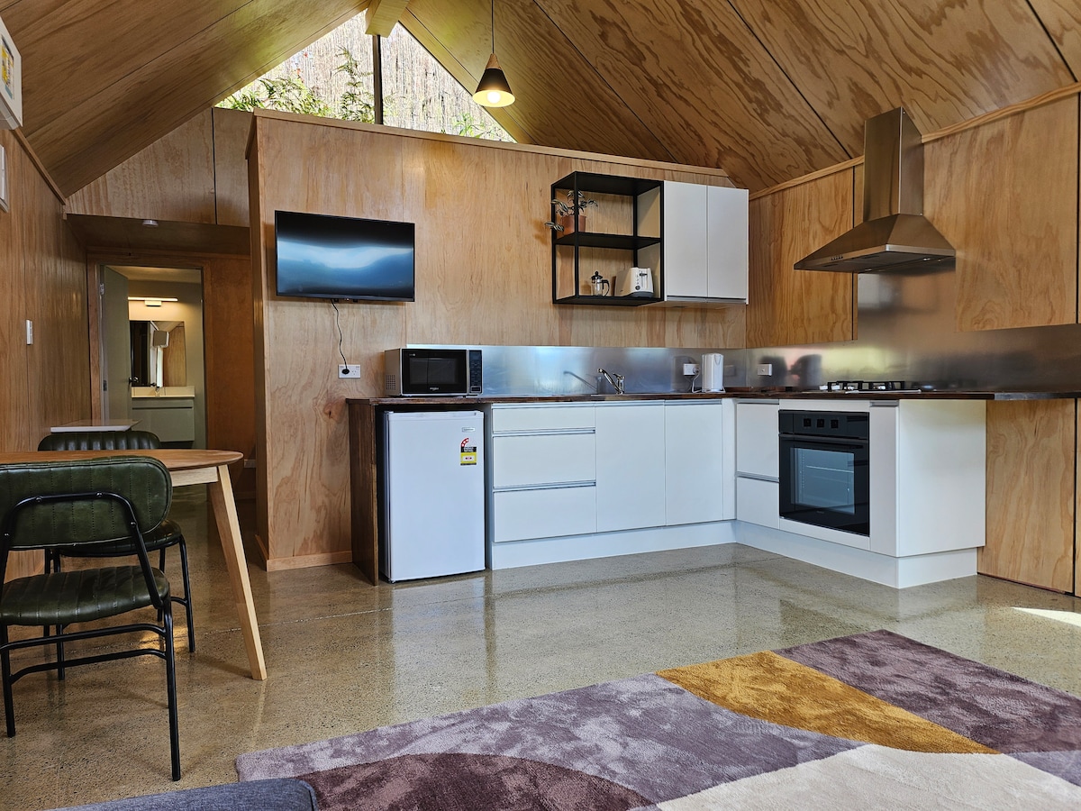Esta habitación tipo estudio cuenta con una cama tamaño queen y una cama individual, un baño privado y cocina (consulta las normas de la casa para conocer las restricciones), junto con un alto nivel de confort proporcionado por ventanas y puertas de doble acristalamiento, aislamiento completo y una bomba de calor para mantenerte cómodo durante la parte más fría del año. Hay un estudio adyacente muy similar en la configuración, pero con solo una cama tamaño queen. Hay estacionamiento fuera de la calle disponible justo afuera del espacio.