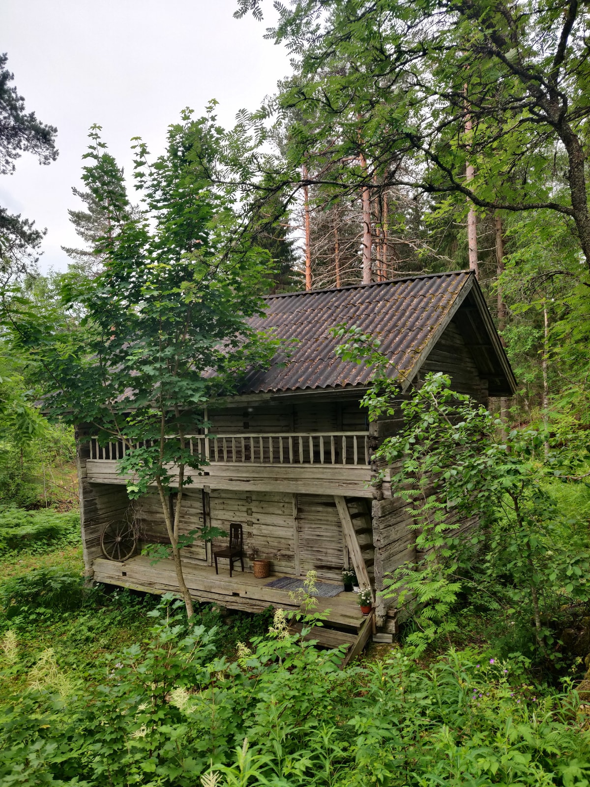 Mantente barato, pero acogedor a lo largo de tu viaje. La casa está ubicada cerca de la ruta 4 y puedes conducir hasta el patio, junto a la cabaña. El patio se menciona de forma única y la cabaña ha sido originalmente una antigua sauna de humo diseñada e implementada por la diseñadora gráfica Laura Matikainen de Bélgica. El inodoro es una antigua ducha exterior. Se proporcionará agua y jabón de manos. La cabaña tiene nevera, placa eléctrica, café y hervidores, olla y platos desechables.