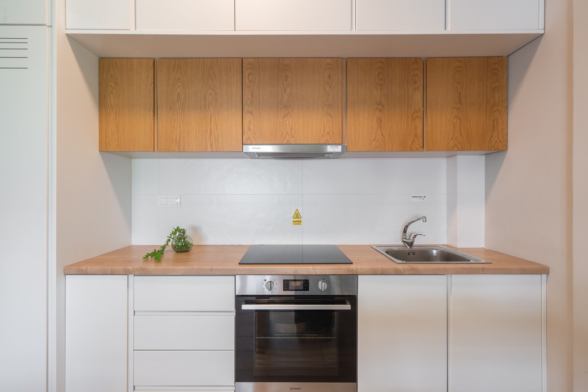 Moderno apartamento de un dormitorio con balcón, lavandería y gimnasio