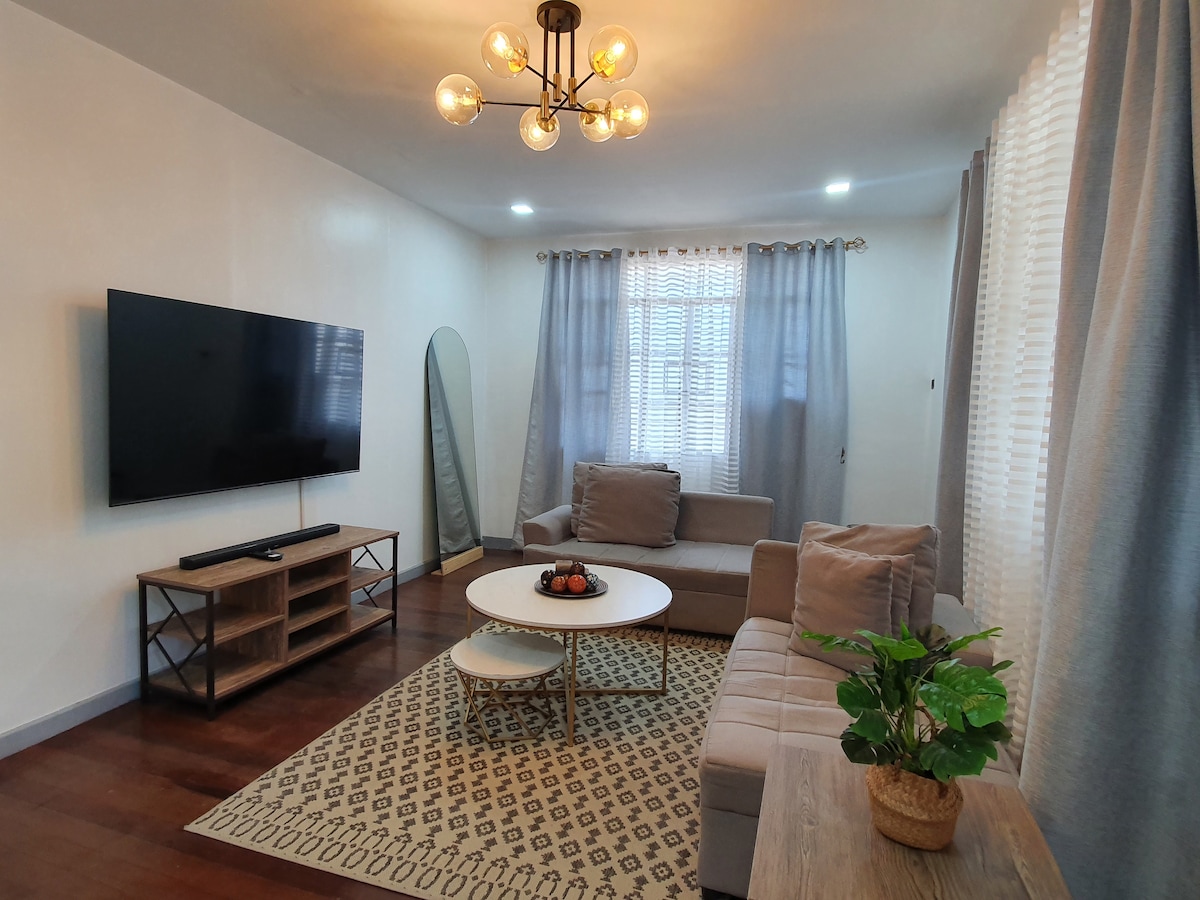 A 10 minutos del estadio New Clark City A 25-30 minutos del salto del monte Pinatubo. Con internet de hasta 200 mbps. Dormitorio principal con 2 camas dobles, TV, armario empotrado, baño privado con calentador de agua y ducha. Segundo dormitorio con cama tamaño queen. Sala de estar con sofá cama, TV inteligente de 50 pulgadas con TV por cable, Netflix y Amazon Prime. Uso gratuito del karaoke. Habitaciones con aire acondicionado, incluida la sala de estar. Cocina totalmente equipada Lavadora en la unidad. Segundo baño completo con calentador de agua para la ducha. Aparcamiento cerrado para 1 vehículo. Aparcamiento en la calle permitido. Servicio de entrega de comida disponible en la zona.