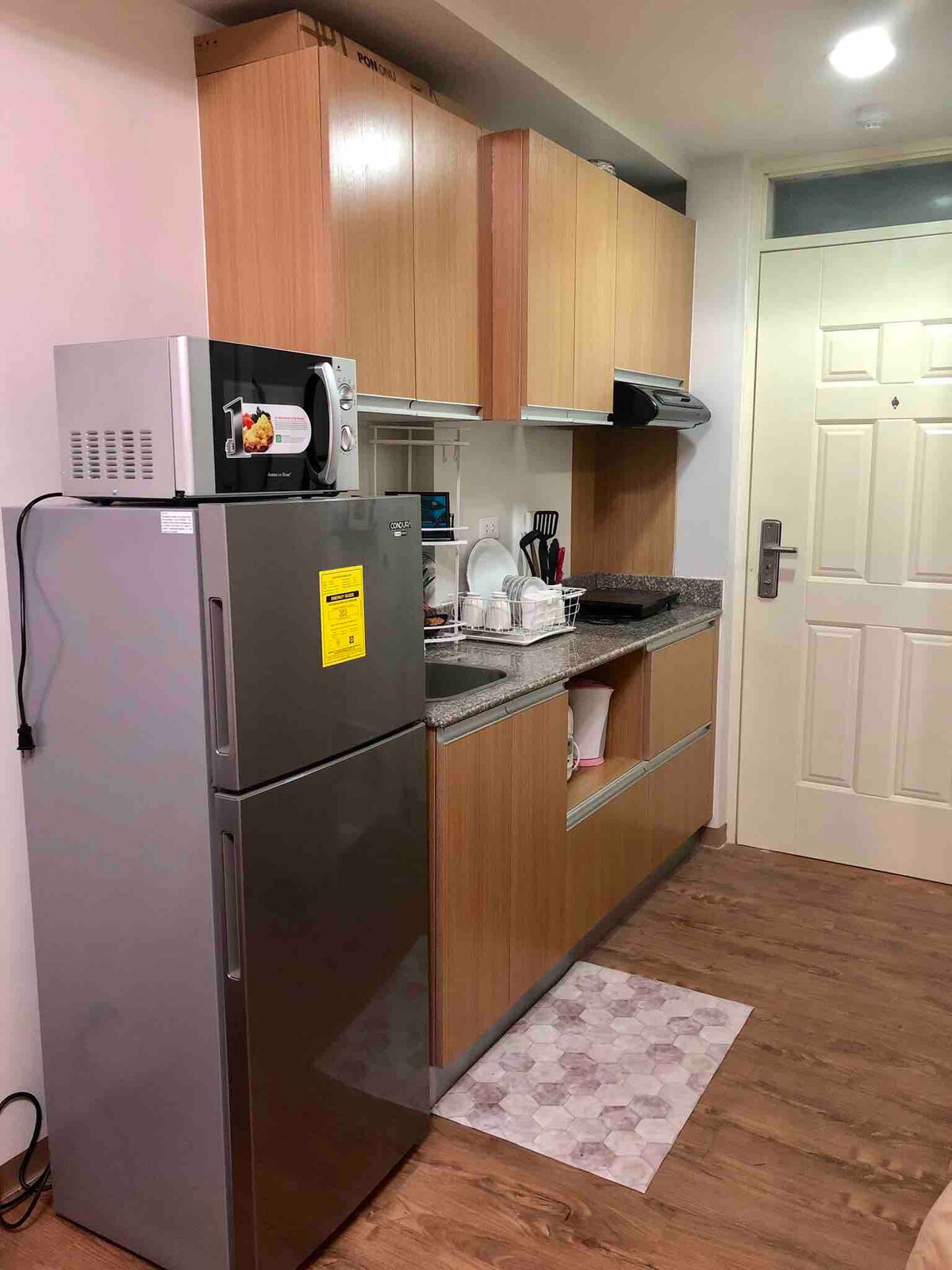Apartamento tipo estudio totalmente amueblado en el I.T. Park Cebu City, que ha sido diseñado profesionalmente para la comodidad del huésped. Equipado con cocina completa con utensilios y platos, estufa eléctrica, aire acondicionado, calentador de agua, plancha, TV con Netflix, nevera, velocidad de internet de hasta 50 Mbps, microondas, arrocera y hervidor de agua. El edificio está a 5 minutos a pie de Ayala Malls Central Bloc. Hay una amplia variedad de restaurantes para elegir. Es fácil reservar Grab o taxi para llegar a tu destino.
