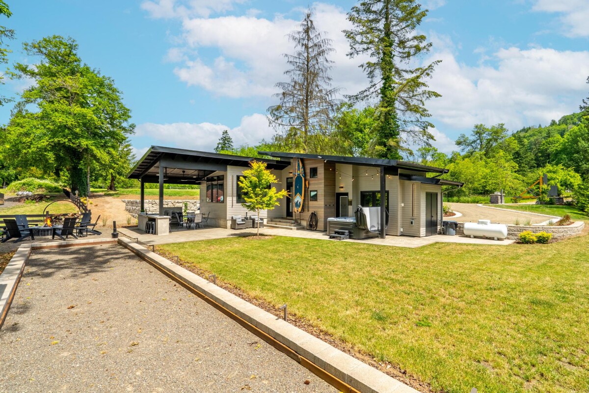 Welcome to your tranquil cottage on the Deschutes River! This peaceful hideaway is perfect for rest and relaxation, with plenty of amenities to enjoy. The expansive property includes a fire pit, hammock, trampoline, and rafts for floating on the river. Wake up to the sounds of goats, enjoy the fresh eggs, goats milk provided to each guest, and sip your coffee on your private patio under the wisteria. Admire the art from local artists in and around the cottage (all available for purchase)