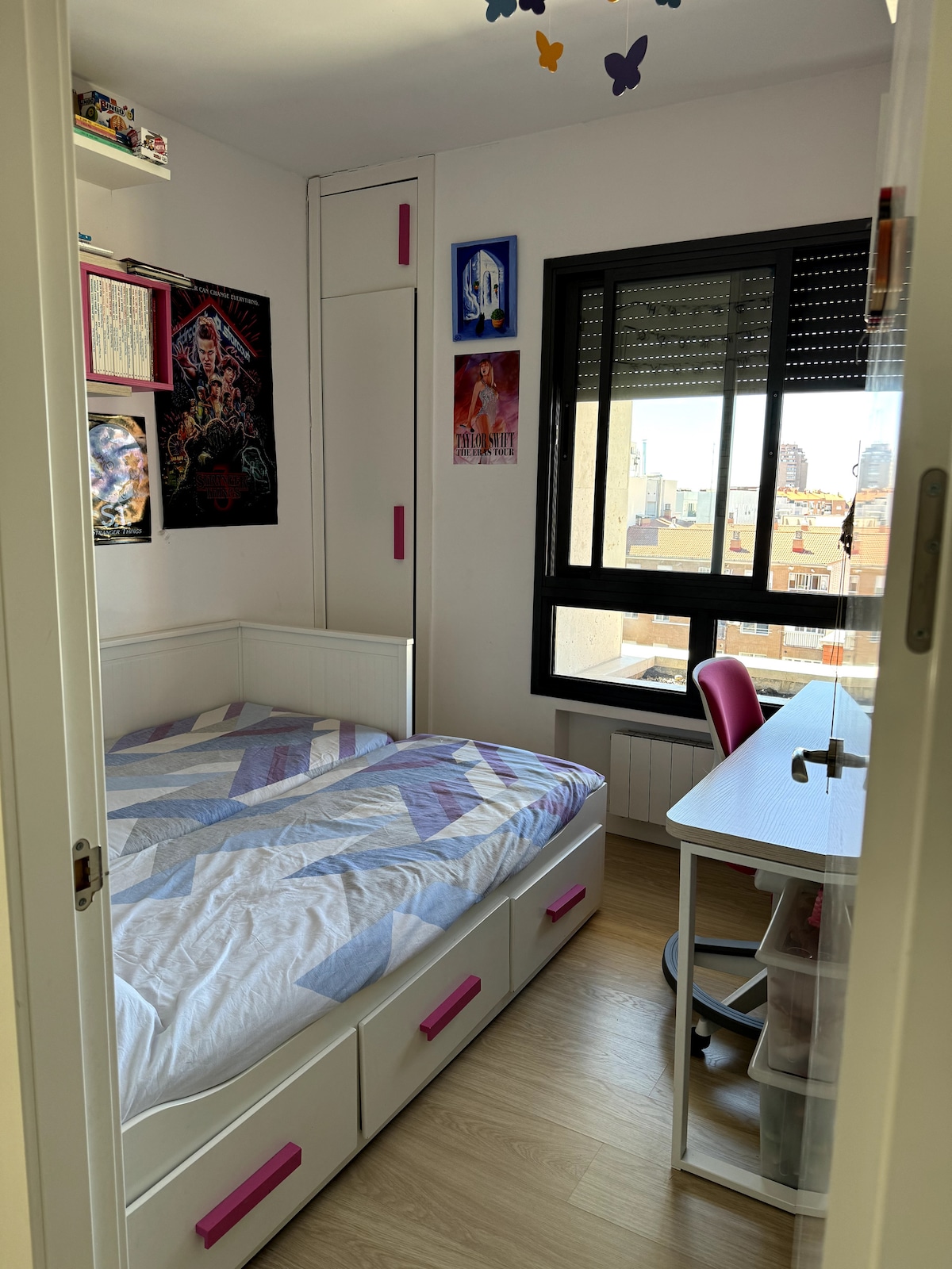 Alquiler de temporada (LAU) para estancias laborales, médicas o de estudio. No turístico. Luminoso, confortable y totalmente equipado, climatización silenciosa, puerta blindada y vigilancia 24h. Piscina (verano), gimnasio, tenis, pádel, baloncesto, y estupendo jardín comunitario.Situado en uno de los barrios más seguros de Madrid. Parque Juan Pablo II a escasos metros. Cerca de IFEMA, Palacio de Congresos, Clínica Universidad de Navarra y Aeropuerto, con excelentes conexiones al resto de Madrid.