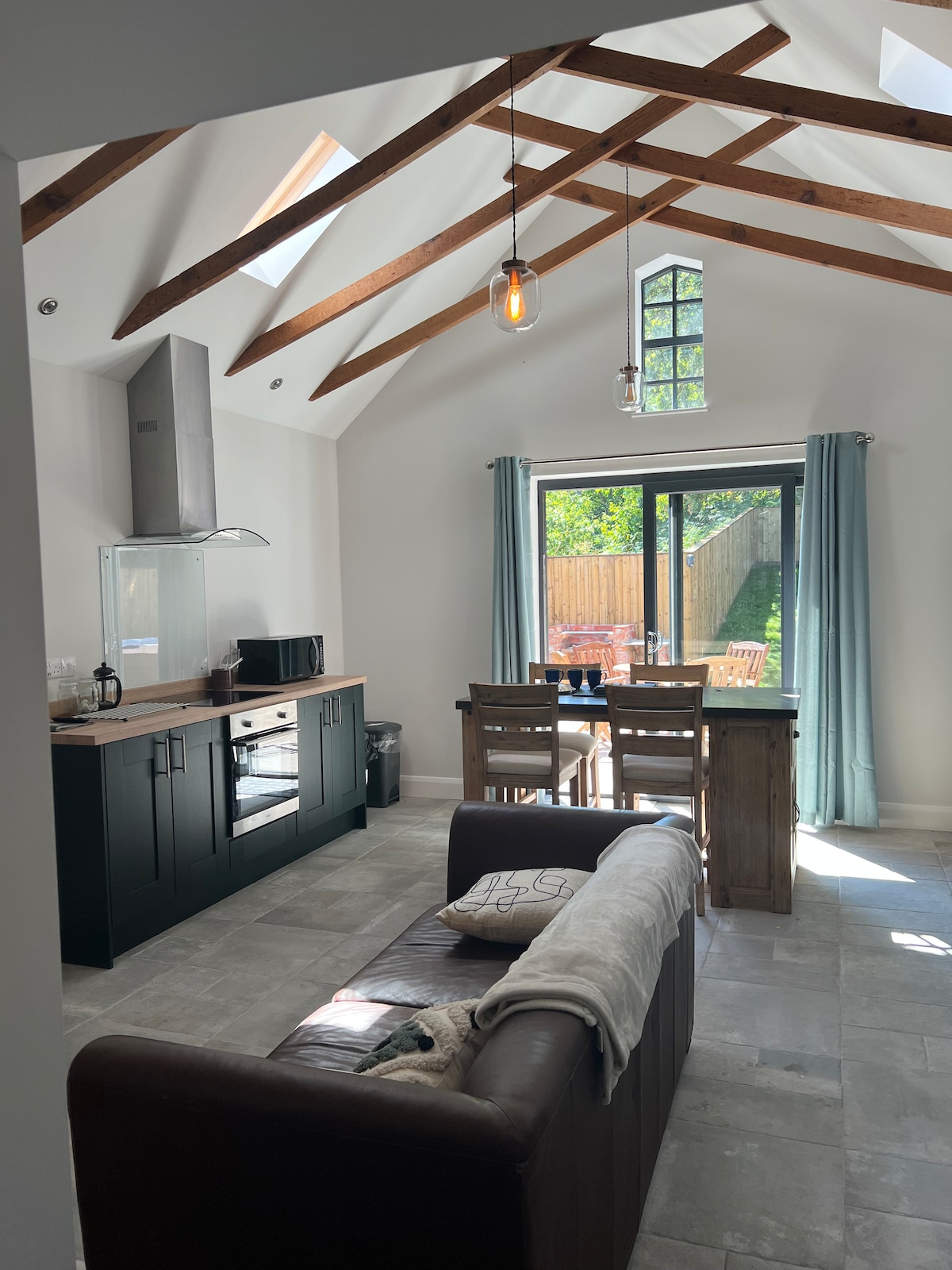 Y Beudy es una de nuestras 2 cabañas, junto con Y Bwthyn, es una cabaña de planta baja, convertida de un establo de piedra con acceso para sillas de ruedas. Salón de planta abierta con estufa de leña y cocina/comedor, dormitorio doble, dormitorio con litera, baño con ducha y techos abovedados originales y vigas en todas partes. Con un jardín privado, cerrado, apto para perros y orientado al sur, las vistas son preciosas. Las cometas rojas vuelan en círculos por encima y toda la propiedad está rodeada de tierras de cultivo, con 5 acres de nuestra tierra para que los explores.