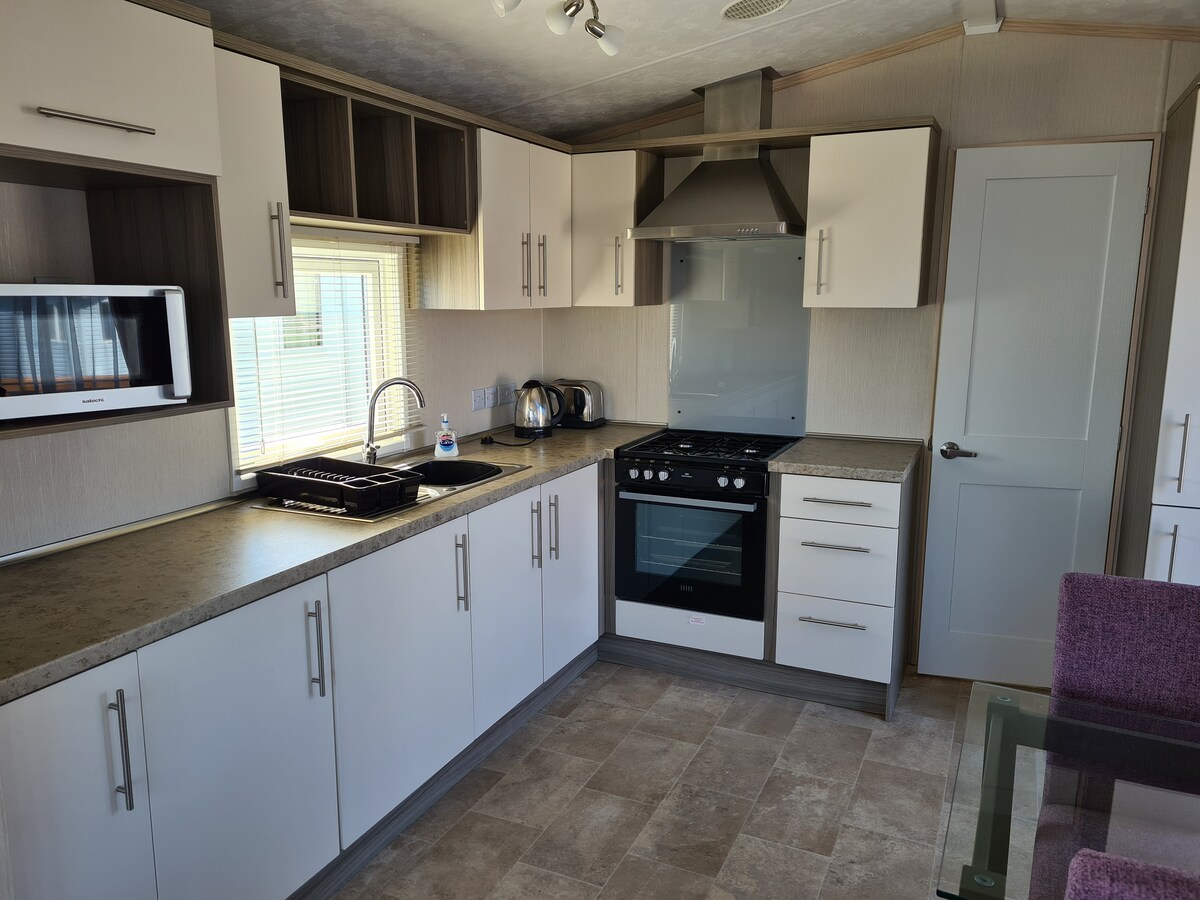 Excelentes vistas a la bahía de Cardigan. Observa los delfines. A menos de 5 minutos a pie de la playa. Caravana estática Pemberton Marlow de 6 literas. Smart TV. Wifi. Cocina de gas de tamaño completo. Microondas, nevera/congelador, freidora de aire. Dormitorio doble y habitación con dos camas individuales. Sofá cama extraíble. Cubierta envolvente. Aparcamiento reservado por caravana. Se proporcionan sábanas y toallas. El pase de juego se puede comprar siempre que el día de llegada y la duración coincidan con una estancia vacacional en Haven. Se admite un perro pequeño/mediano.