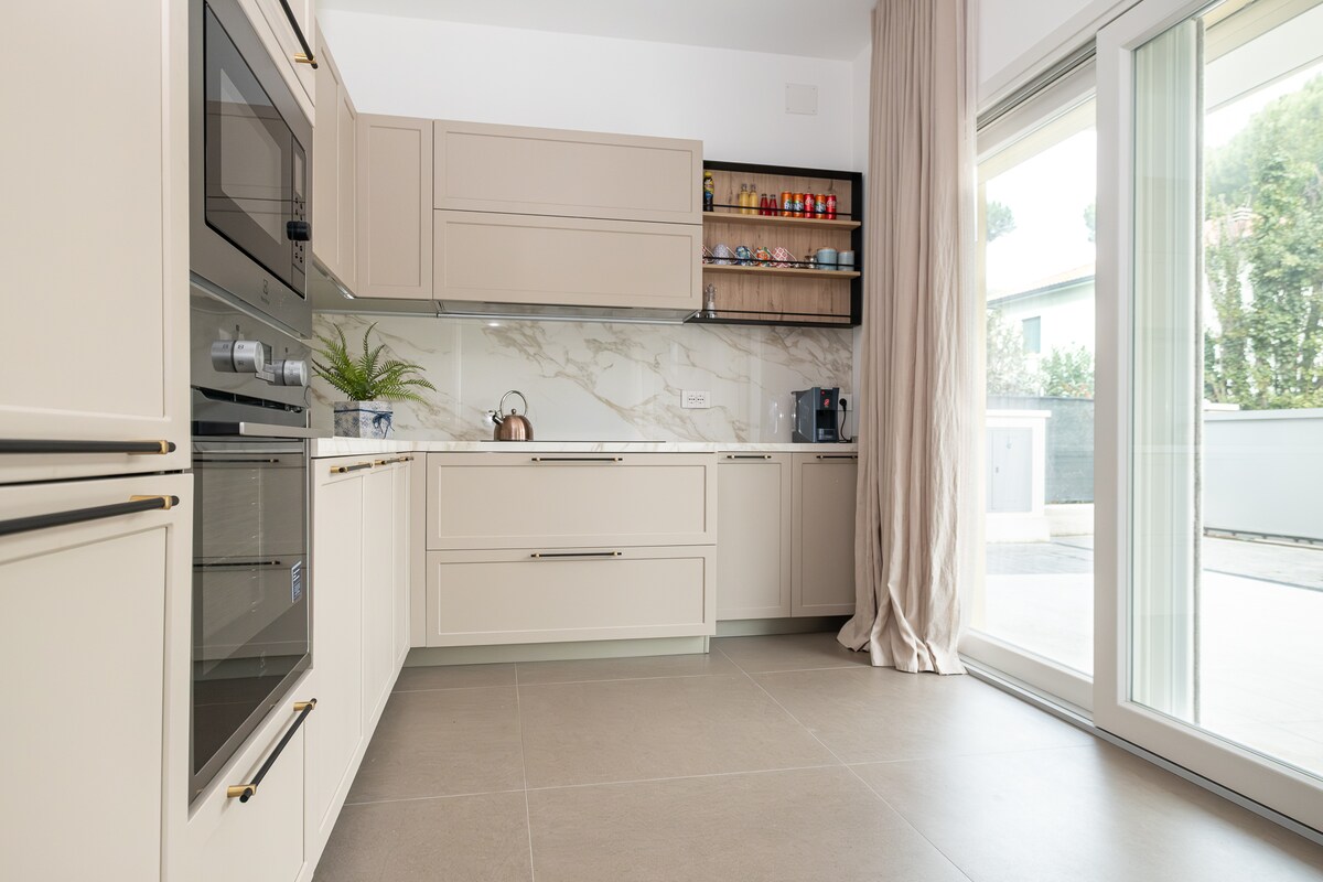 La casa está en la planta baja con entrada independiente y jardín exclusivo en una villa de dos familias. Ha sido finamente renovado tanto interna como externamente y está equipado con todas las comodidades modernas. Su ubicación céntrica, pero en una calle tranquila lo hace único. A pie se puede llegar a los lugares más interesantes de la ciudad, todas las comodidades y la playa está a solo 400 metros de distancia.
