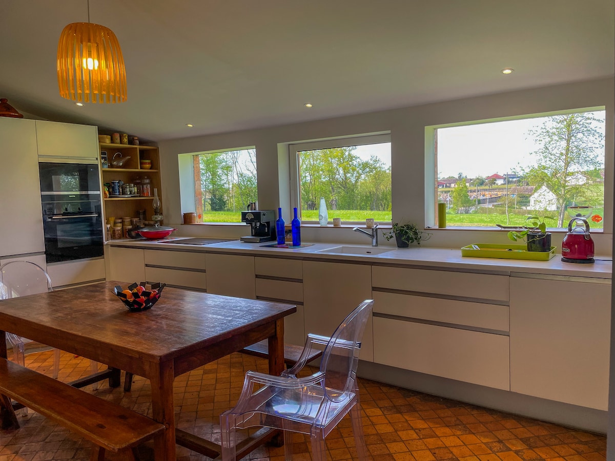 ¡Venga a relajarse o teletrabajar en plena naturaleza! Amplia, muy cómoda, la casa tiene capacidad para 7 personas, más un niño. Se encuentra a 900 m del centro de la ciudad, en una aldea de 3 casas al borde del bosque, y permite llegar a las tiendas locales (panaderías, farmacia...) a pie, y salir directamente a caminar por el bosque de Perche Trappe. Todo a 15 minutos de Mortagne, a 2 horas de París por la N12, y a 10 minutos de la base de ocio acuático de Soligny.