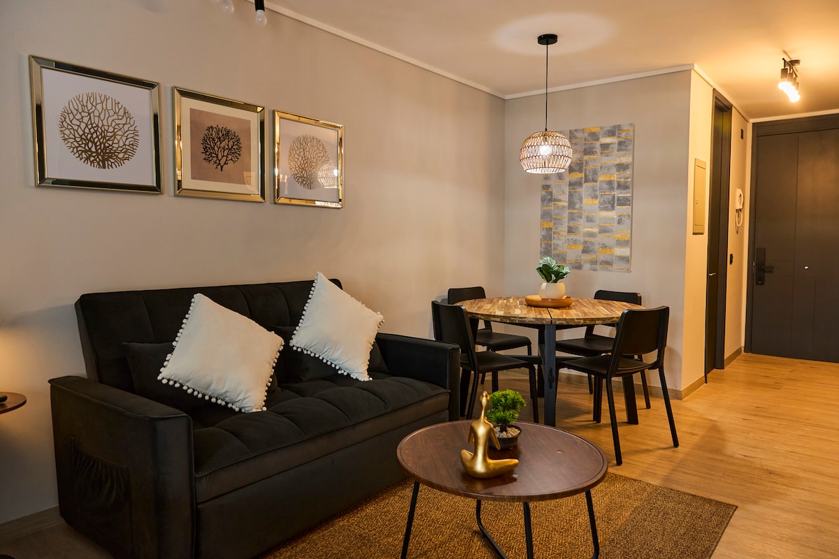 Descubre la experiencia donde el diseño moderno se encuentra con raíces precolombinas y cultura Mapuche. Depto temático, combina líneas modernas con selección réplicas cerámica prehispánica y textiles mapuches que llenan espacios de historia y calidez. A 25 min caminando mall Alto las Condes, piscina panorámica, incluye estacionamiento privado. Depto. no recomendable niños. Pueden alojar con bebé si traen cuna. A pocos minutos mall Alto las Condes y Parque Arauco, Prohibido visitas y fiestas