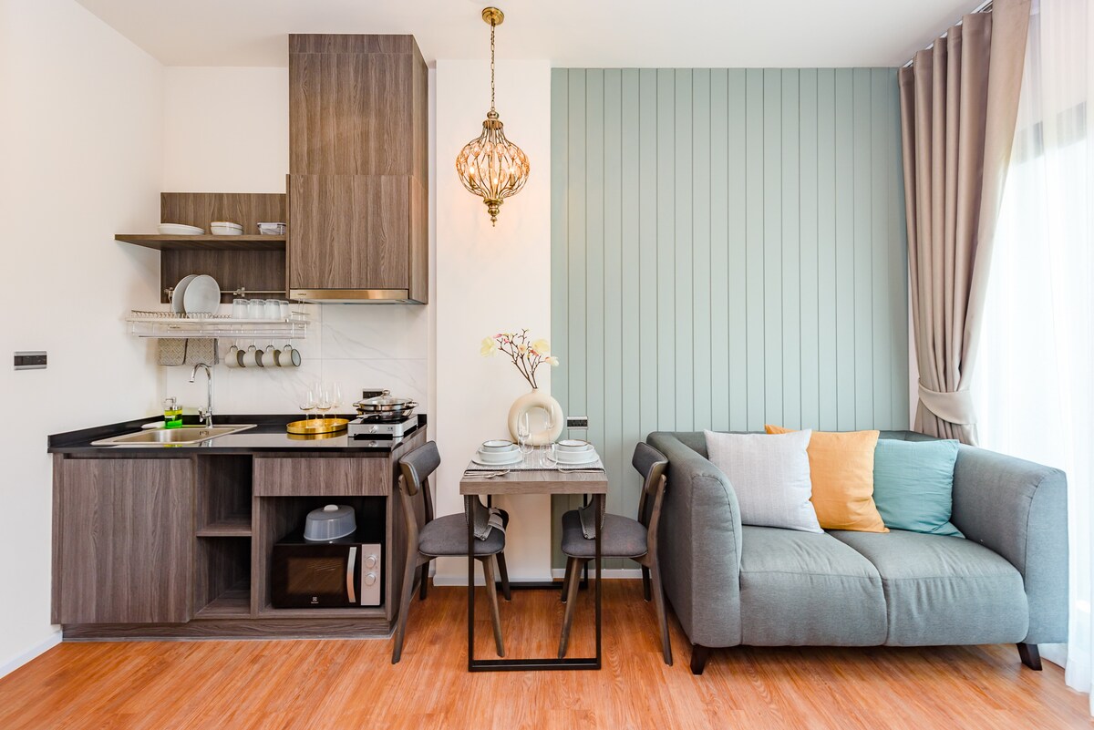 La mejor vista al atardecer al atardecer en la azotea, piscina y cocina, bañera, balcón, 1 dormitorio, 1 sala de estar, habitación acogedora y seguridad las 24 horas.