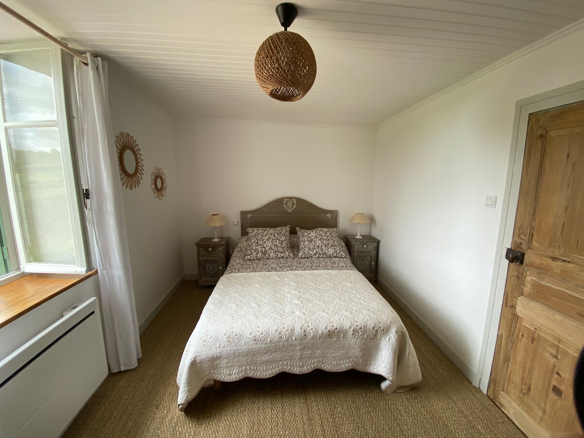 Antiguo establo rehabilitado en vivienda, esta casa de madera de 60 m2, situada en plena naturaleza, combina encanto y sencillez . Cerca de la vivienda principal, pero totalmente independiente, la casa está a 100 metros de un encantador molino de viento, en el borde del bosque. Ideal para los amantes del campo, los animales y la tranquilidad, este remanso de paz rinde homenaje a la belleza de la naturaleza y le ofrece como única vecindad perros, caballos, corzos, zorros, liebres y cantos de pájaros….