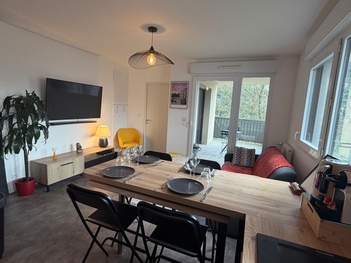Magnífico apartamento independiente de 45 m² idealmente situado entre la ciudad y la naturaleza en Cesson-Sévigné (35). Plaza de aparcamiento privada. Entorno residencial, tranquilo y de fácil acceso. - Una habitación con cama doble y armarios, - Una gran sala de estar luminosa con cocina abierta totalmente equipada, - Cuarto de baño con lavadora, - Aseo independiente. En los alrededores: - Centro de la ciudad de Rennes a 10 min - Centro comercial a menos de 5 minutos - Zona natural a 5 minutos