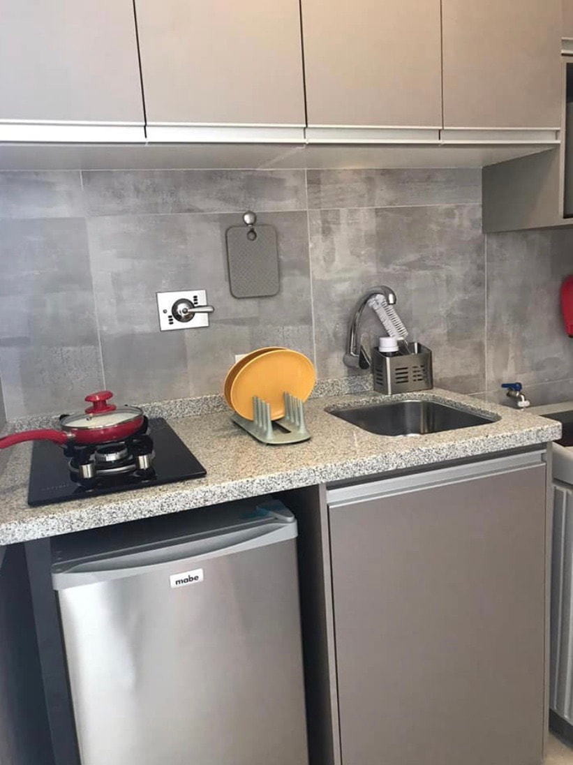 Relájate en este espacio seguro, tranquilo, cómodo y sin preocupaciones; en zona top de Cochabamba. Frente a un hermoso parque para caminar y ejercitarse. Edificio nuevo que cuenta con amplia sala de trabajo y WiFi. Cercano a cafeterías, Super Mercado, centros comerciales y restaurantes. El estudio tiene sala de estar, TV de 65”, WiFi, sofá cama, cama Queen, cómodo baño y cocina equipada con microondas, horno eléctrico, cafetera, caldera eléctrica, refrigerador y accesorios.