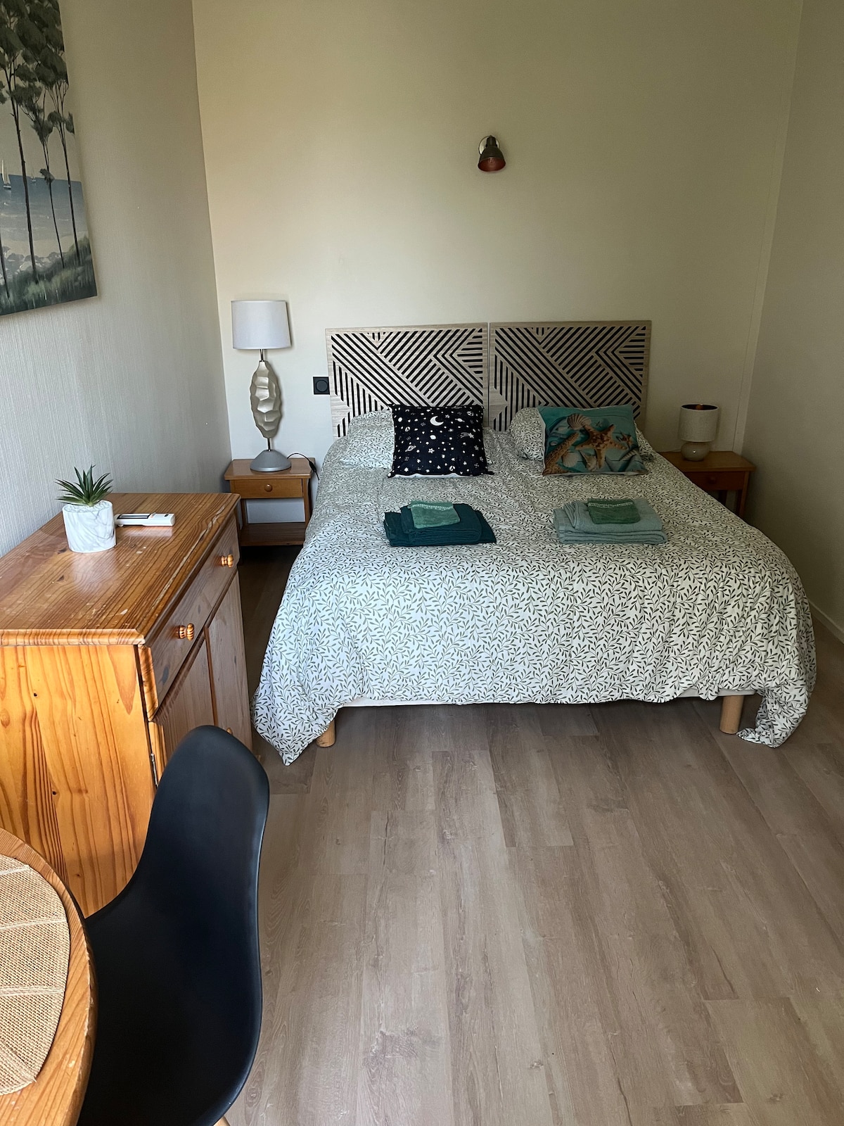 Oferta de alta gama asequible: habitación con cama de lujo motorizada, así como una cocina totalmente equipada y televisión con Netflix, y sobre todo un baño con un jacuzzi SPA J-315, verdaderamente hidromasaje, que también incluye una sauna tradicional y una amplia ducha a ras de suelo: ¡todas estas instalaciones serán exclusivamente privadas! Situado en plena naturaleza, aunque cerca de las tiendas, de Limoges, de Oradour Sur Glane, lleno de agradables paseos desde la salida de la vivienda.
