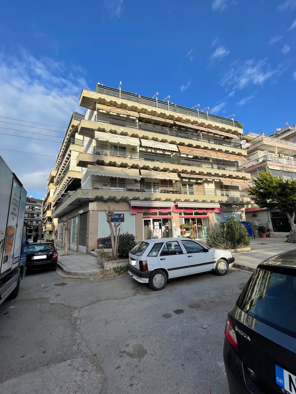 Este apartamento único se encuentra en el último piso de un edificio nuevo con vistas despejadas a Salónica e incluye aparcamiento gratuito. El apartamento se encuentra en el sexto piso y los huéspedes tienen acceso mediante el ascensor. La distancia desde el centro de la ciudad es de unos 4 km. La distancia del aeropuerto es de 15 km. • Los servicios, entre otros, son: 2 televisores inteligentes (acceso a Netflix, Disney+, etc., utilizando tu propia cuenta). • Cafetera Nespresso. •Lavavajillas, lavadora y secadora de ropa. • Plaza de aparcamiento gratuita en el edificio.