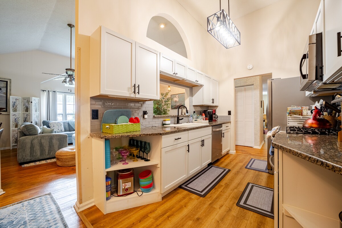 Esta encantadora casa de estilo bungaló se encuentra en Mt. Pleasant, cerca de todo lo que necesitas en tus vacaciones. Disfruta de un nuevo jacuzzi en el patio al aire libre totalmente vallado, que también incluye un pozo para hacer hogueras, parrilla y zona de estar. A minutos de la playa, el centro de Charleston, restaurantes locales y Shem Creek. Esta casa cuenta con techos abovedados, una amplia sala de estar y 3 cómodos dormitorios. La casa cuenta con capacidades de trabajo desde casa, electrodomésticos nuevos, un diseño renovado con estilo y mucho más. Nuevo UHD