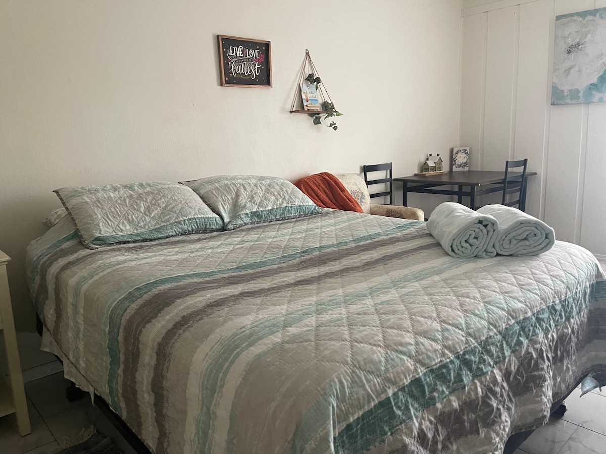 ¡Bienvenido a tu hogar perfecto lejos de casa! Si buscas un alojamiento espacioso y cómodo, no busques más. Nuestro estudio recién amueblado y remodelado tiene todo lo necesario para una estancia prolongada, ¡lo que garantiza una experiencia cómoda y sin estrés! Situado en un barrio seguro y tranquilo, cerca de los principales hospitales y a 6 minutos de la playa de Manasota Key, a 5-10 minutos de tiendas, restaurantes, autopistas, etc., lo que hace que tus desplazamientos diarios sean muy fáciles. NOTA: Se admiten mascotas (perros) previa aprobación de la raza y depósito de mascotas.