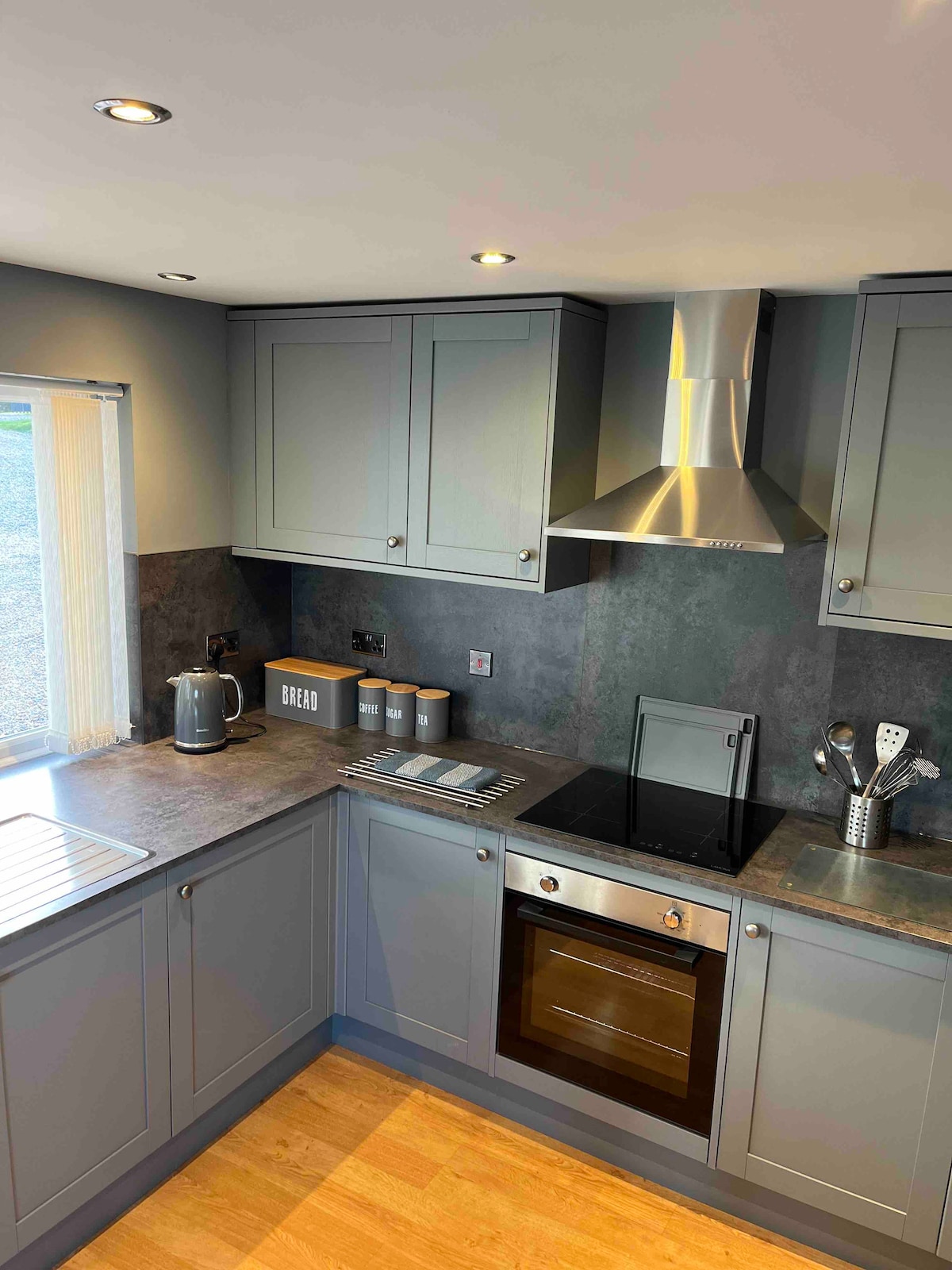 El exclusivo Tin Shed ha sido diseñado con materiales sostenibles y reciclados, con obras de arte originales de artistas locales y lleno de luz natural. Está revestido de madera creando un ambiente cálido y natural y también cuenta con una estufa de leña. Una cocina compacta y bien equipada, sala de estar, baño en la planta baja con ducha de hidromasaje y WC. Arriba hay un dormitorio generoso con camas tamaño Super King o individuales, y hermosas vistas a la campiña ondulante desde una ventana panorámica. En el exterior hay un patio y una chimenea.