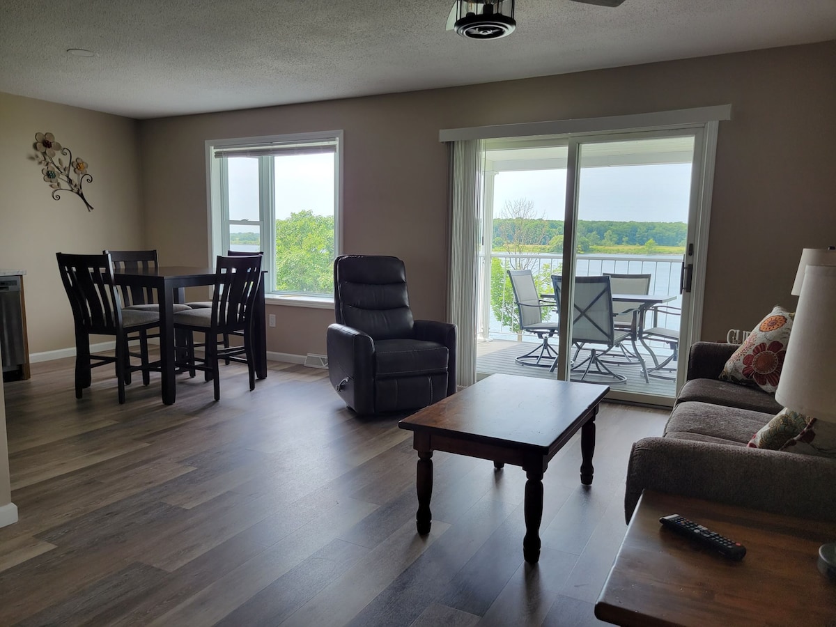 ¡Increíble bañera de hidromasaje y patio, ambos con impresionantes vistas al río!- Wifi de alta velocidad DSL - 17 min Brockville - ¡Magnífico alojamiento de 1000 pies cuadrados con acceso al río St. Lawrence, aislado frente al mar! ¡Calefacción ambiental en el suelo para complementar la hermosa chimenea de gas! La habitación principal cuenta con cocina personalizada con gabinetes de pino hechos a mano y una pared de 4 ventanas muy altas orientadas al sur/puertas de patio-Baño de 4 piezas de alta gama-Los cuartos principales ofrecen cama tamaño king/armario para él y para ella-2do dormitorio tiene cama queen murphy-¡Disfruta de kayaks/pesca desde el muelle!
