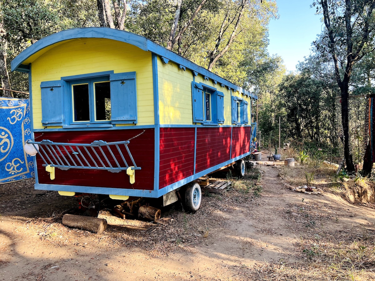 Roulotte bohemienne + 3 espaciosas tiendas de 2 plazas con colchón: TODAS estas camas PARA UNA SOLA RESERVA. 5 minutos a pie de las cascadas su saltoadet, en un bosque provenzal. acceso privado al río, terrazas a la sombra a orillas del agua. A 10 minutos andando de la roque sur ceze serán los únicos en este valle que tiene un gran espacio con playa privada al lado de las cascadas. Entorno rústico, Ideal para reponer energías ,para amantes de la naturaleza,artistas,yoguis.