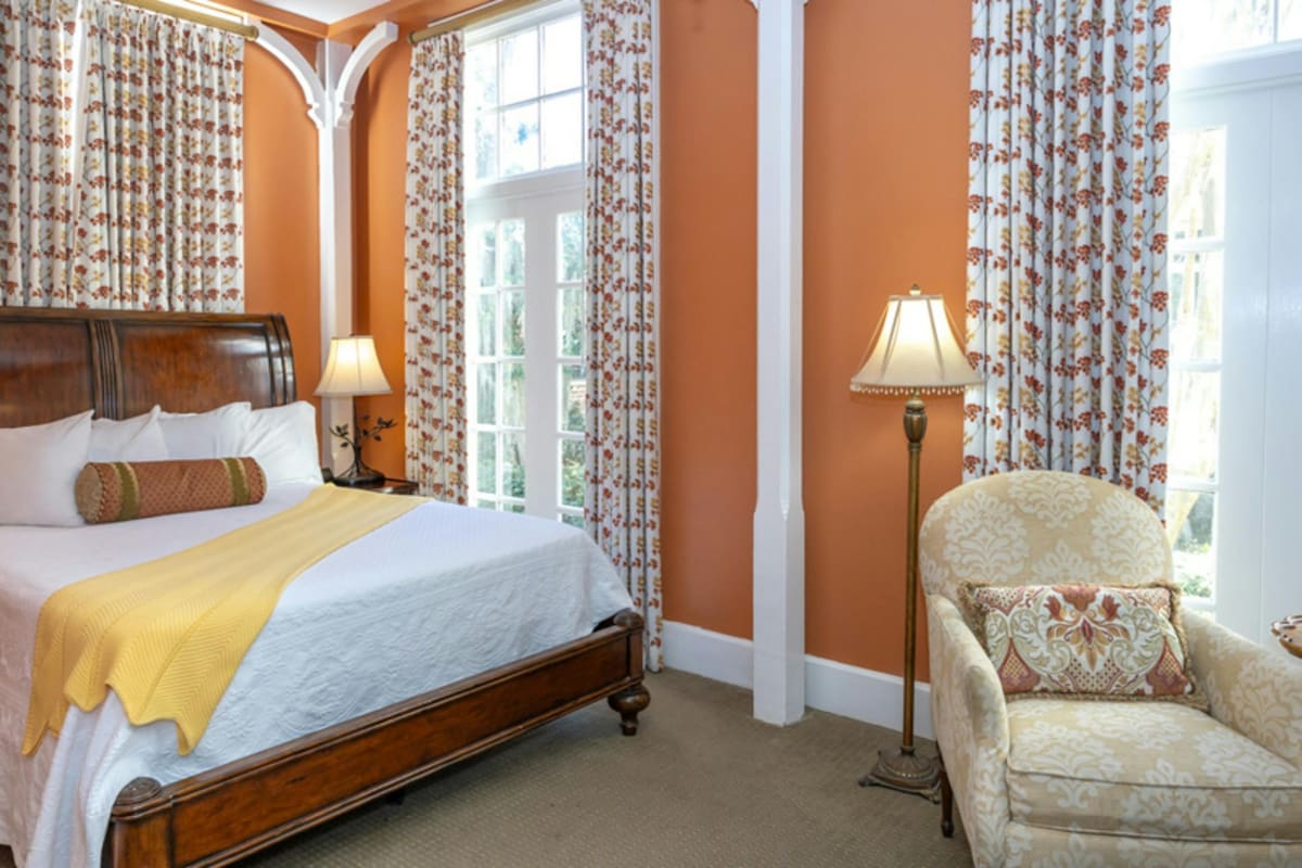 Nestled on the lower level near the garden courtyard, the Oglethorpe Room is private, quiet, and easily accessed from Jones Street. Once the home’s kitchen, it features a large, open fireplace adding unique character to the space. Relax with a king bed, private bath with walk-in shower, premium linens, high-speed WiFi, climate control, flat-screen HDTV, and an in-room safe. Complimentary drinks, coffee, and thoughtful amenities make your stay exceptionally comfortable.