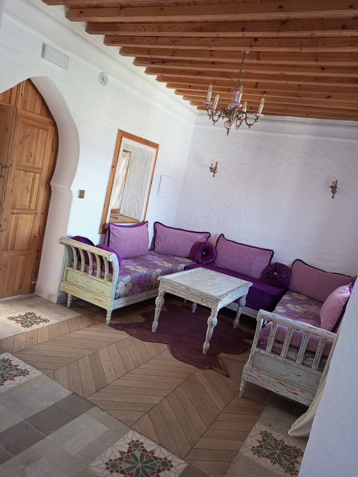 Precioso riad en el centro de la medina con el típico patio central abierto al cielo. Tiene 3 terrazas estupendas y fabulosas vistas. Restaurado conservando toda su antigüedad sin perder el confort. Pueden alojarse hasta 8 personas . Animales bien recibidos. Perfecto para el verano, sus antiguas y gruesas paredes actúan dejando el calor fuera. Cocinera local opcional. También opción de cocina española.