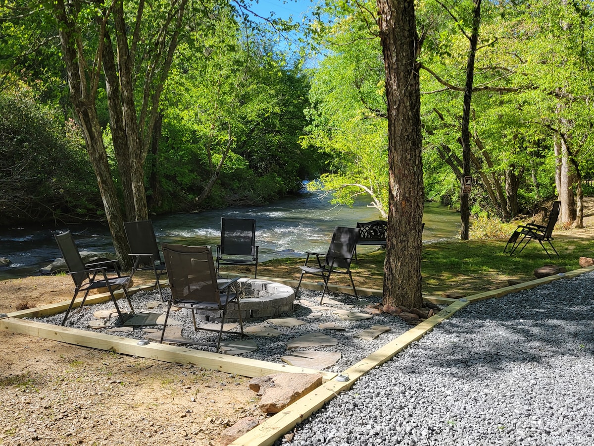 Si buscas un verdadero refugio en un arroyo de montaña, aquí lo tienes. Despiértate con el sonido de los rápidos, toma tu café de la mañana junto al arroyo y pasa las noches alrededor de la fogata bajo los árboles. Nuestra propiedad privada y cercada junto al río se encuentra directamente en el hermoso Brasstown Creek, con fácil acceso desde el patio. Esta escapada única incluye dos casas rodantes (con capacidad para 7–8 personas en total) y una gran terraza cubierta al aire libre con jacuzzi, lo que te brinda la comodidad del hogar mientras te mantiene conectado con el aire libre.