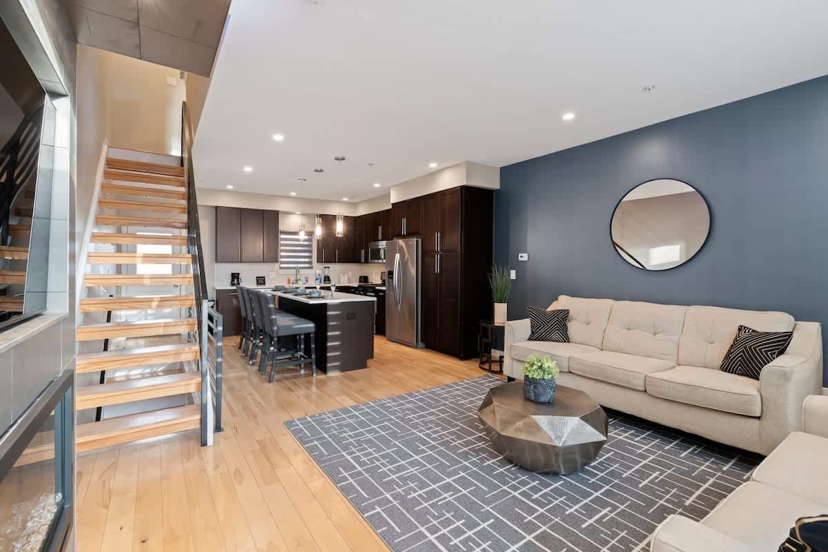 Esta espaciosa casa adosada en el corazón de Fishtown, Filadelfia, es ideal para familias y grupos grandes. Cuenta con dos plazas de aparcamiento privadas cerradas, una terraza en la azotea con impresionantes vistas al horizonte, un cine y una sala de juegos. Cada dormitorio tiene un televisor inteligente, lo que garantiza una estancia cómoda. La casa está bien equipada para el entretenimiento y los servicios de chef privado están disponibles bajo petición. ¡Pregunta por nuestra clase de elaboración de pizzas!