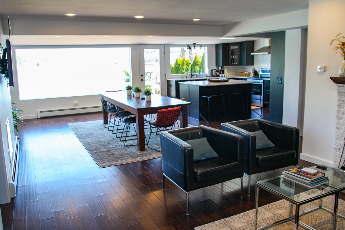 Waterside mid-century modern home, perfectly appointed. Join with colleagues, family, and friends. Paddleboard, roast marshmallows, watch fireworks, take a hot tub or team building. Our "Flight Deck" is perfect for meetings and retreats. Breathtaking, peaceful grounds with an abundance of space. Approximately 2800 SF sits on a 3/4 acre property - perfect for lawn games and zip lining. 20x20 furnished deck + dock Mayo Beach and Beverly Triton 1 mile away. Within an hour of the DMV