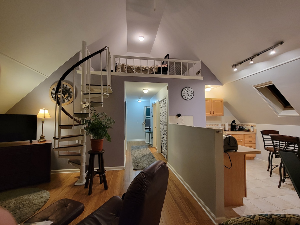 Bienvenido a la costa este de Maryland y a tu propio espacio privado en un antiguo granero de maíz, con todas las comodidades del hogar. El espacio incluye un techo abovedado, colchón Casper® tamaño queen, sábanas de calidad, calefacción y aire acondicionado, Internet inalámbrico, una barra de café, nevera de bar surtida, baño completo con ducha (incluye artículos de baño de calidad) y una entrada privada. Nuestro espacio está permitido para SOLO DOS PERSONAS (no niños menores de 8 años) y, por favor, limita tu visita a un solo vehículo.