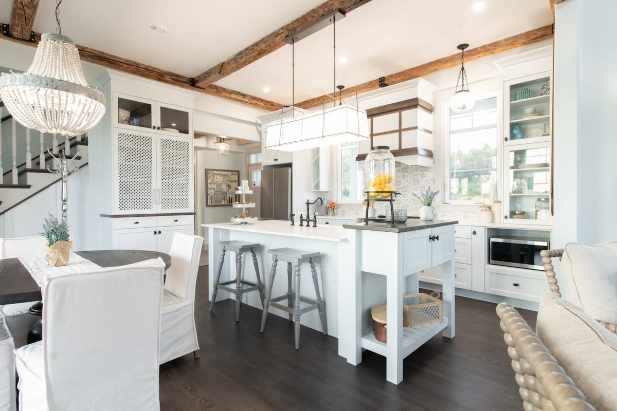 Esta casa de campo de Main Street de nueva construcción está a pocos pasos de todas las atracciones principales, al tiempo que está lo suficientemente apartada de la carretera como para ofrecer a los huéspedes un lugar privado y tranquilo para retirarse al final del día. Estamos justo enfrente de Saltbox Brewery, con un hermoso patio, frecuentes invitados musicales y camiones de comida visitantes. La casa en sí es abierta y ventilada, con puertas francesas, detalles rústicos y una acogedora estufa de leña, ¡lo que la hace adecuada para escapadas durante todo el año!